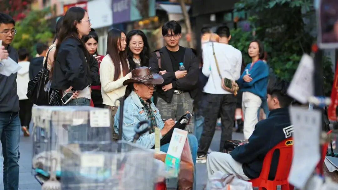 一传十、十传百,查理忽然在社交媒体火了。他的画画摊前,排起了长队。查理按顺序给他们画,画完1号,画2号、3号……“我说你们自己记着哈,我记不住,我现在在画画呢。”查理说,有的人排队四五个小时,只为了他那几秒钟或者一秒钟就画好的画。游客也不只深圳本地的,从全国各地而来,也有不少外国游客。外国人笑着比划要画0.5元的,画完拍完照开心得不行。