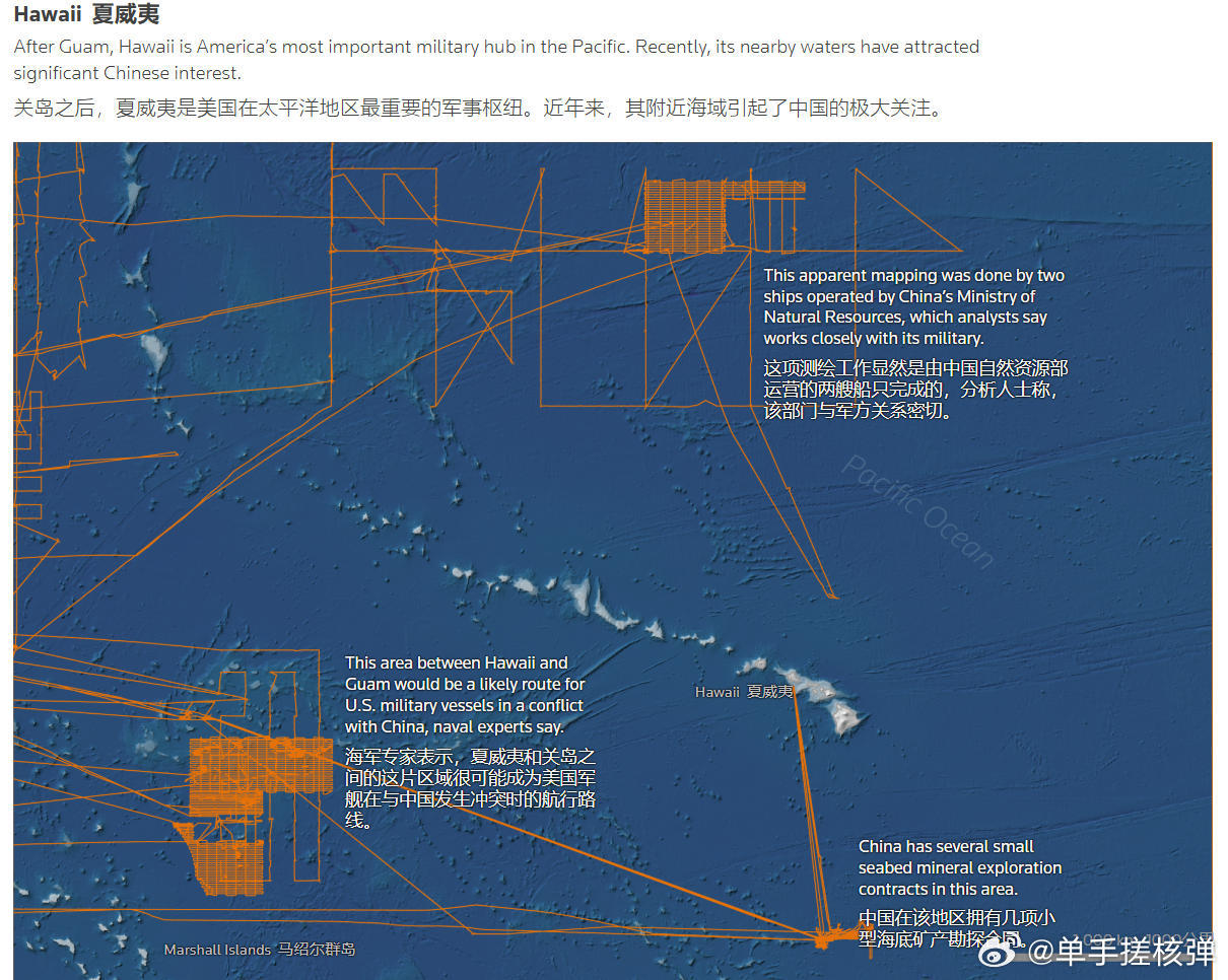 根据英媒路透社的报道示意图来看,东大近些年不仅在自己的“主场”——西太进行了大规模测绘,甚至都跑到夏威夷附近、印度洋了,准备的算是十分充足了。当然了,东大近些年的大规模海底测绘,其实也是在“补课”,因为东大此前在这方面有所欠缺……烽火问鼎计划