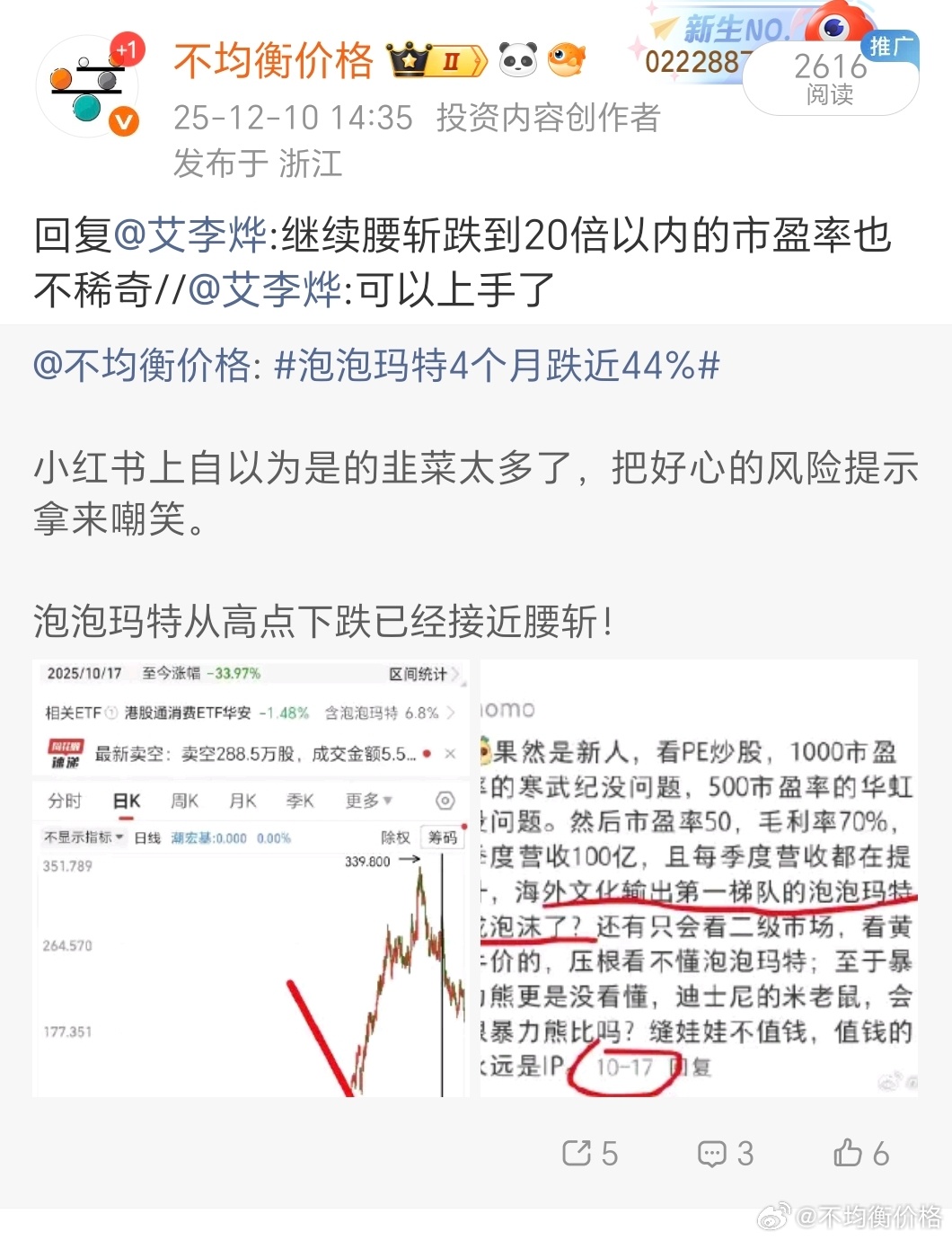 泡泡玛特2025年报发布后,如果没有这两天股价下跌,滚动市盈率也消化到了20倍。股价两天-30%之后,滚动市盈率来到14倍。