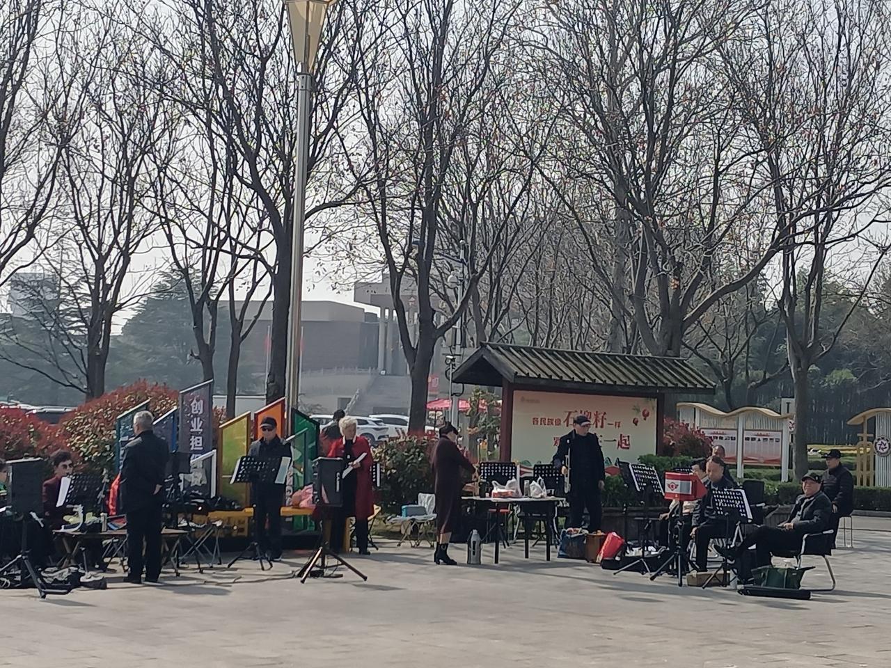 台儿庄业余乐团在“大战纪念馆”门前…(图片来源:老山兰随手拍)