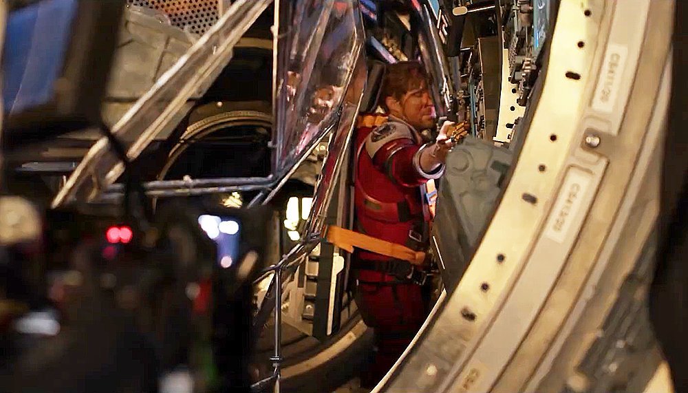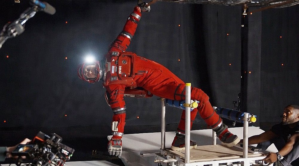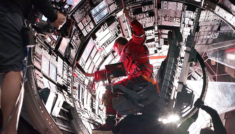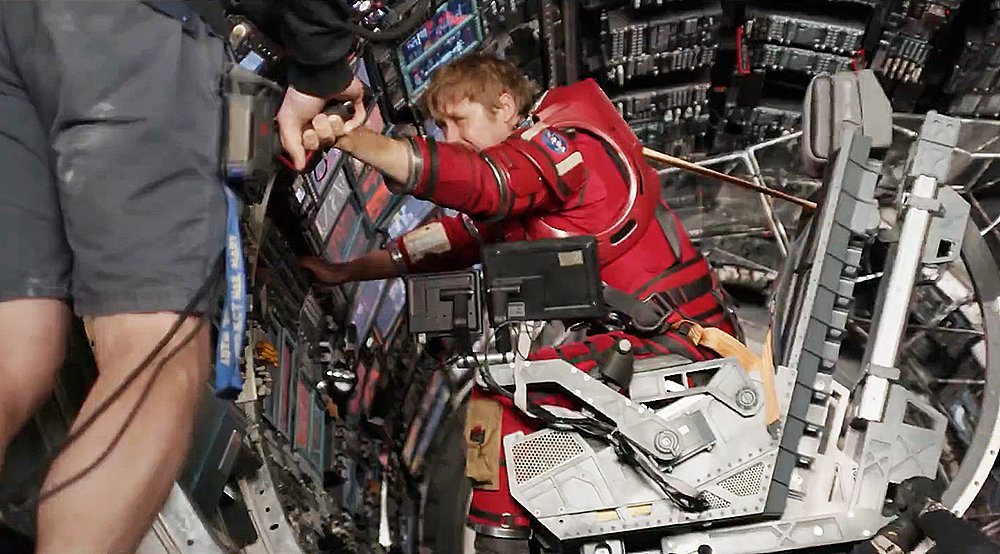 从片场照也能看出来由于宇航服的沉重以及飞船空间的狭小,摄影师格雷格·弗雷瑟也要经常钻到各种狭窄的空间中去拍摄