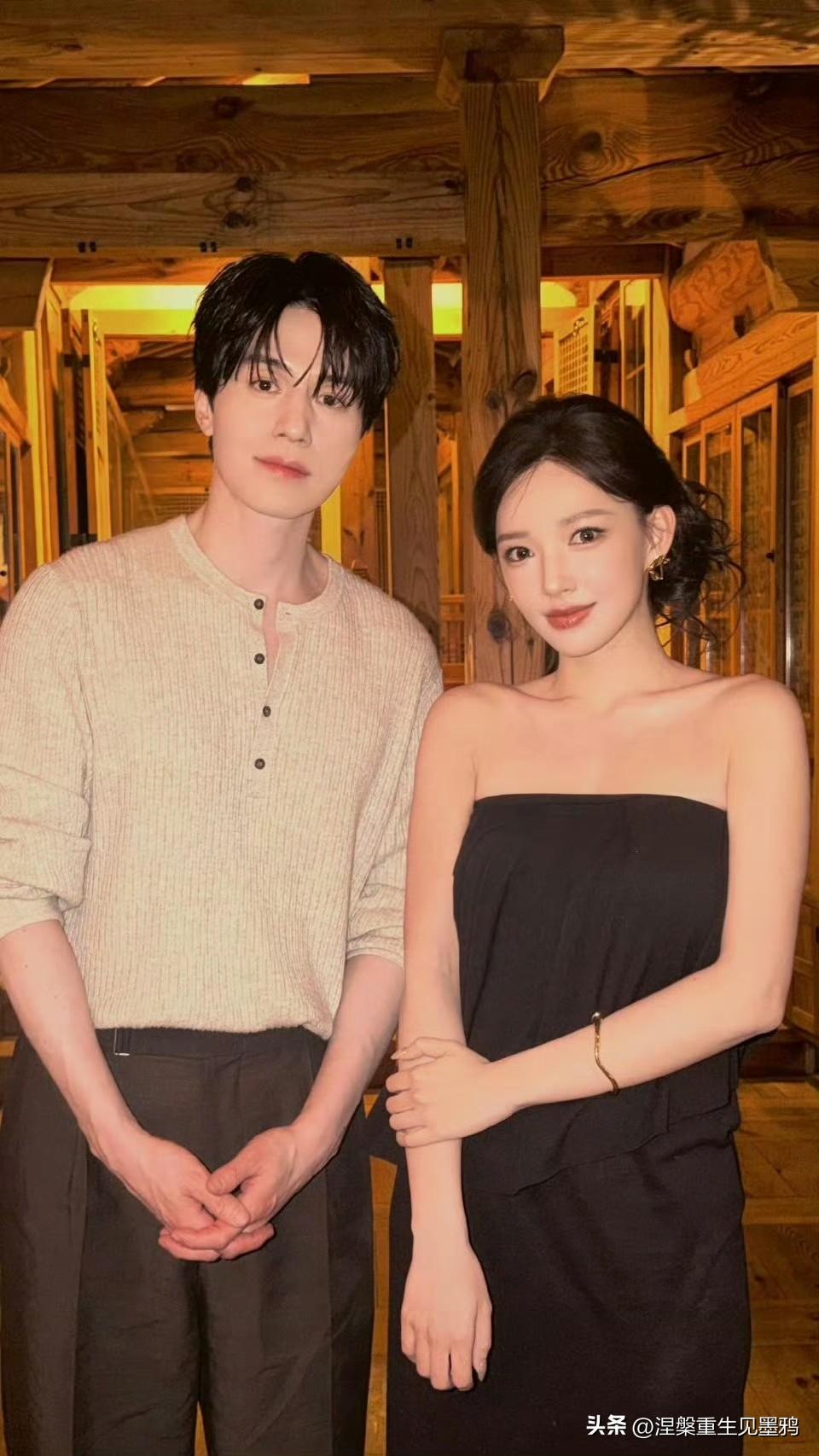 程潇与李栋旭同框 李栋旭五官轮廓分明,眉眼深邃迷人,发型整齐利落,面容清逸俊朗,尽显成熟男性的独特魅力;程潇妆容精致细腻,眉眼弯弯含情,五官柔和温婉,盘发造型搭配黑色抹胸裙,更添优雅气质。二人同框,颜值出众,画面格外养眼。 李栋旭难道是吃了防腐剂不成?四十岁的年纪,脸却嫩得仿佛能掐出水来,和程潇站在一起,宛如“逆生长姐弟”