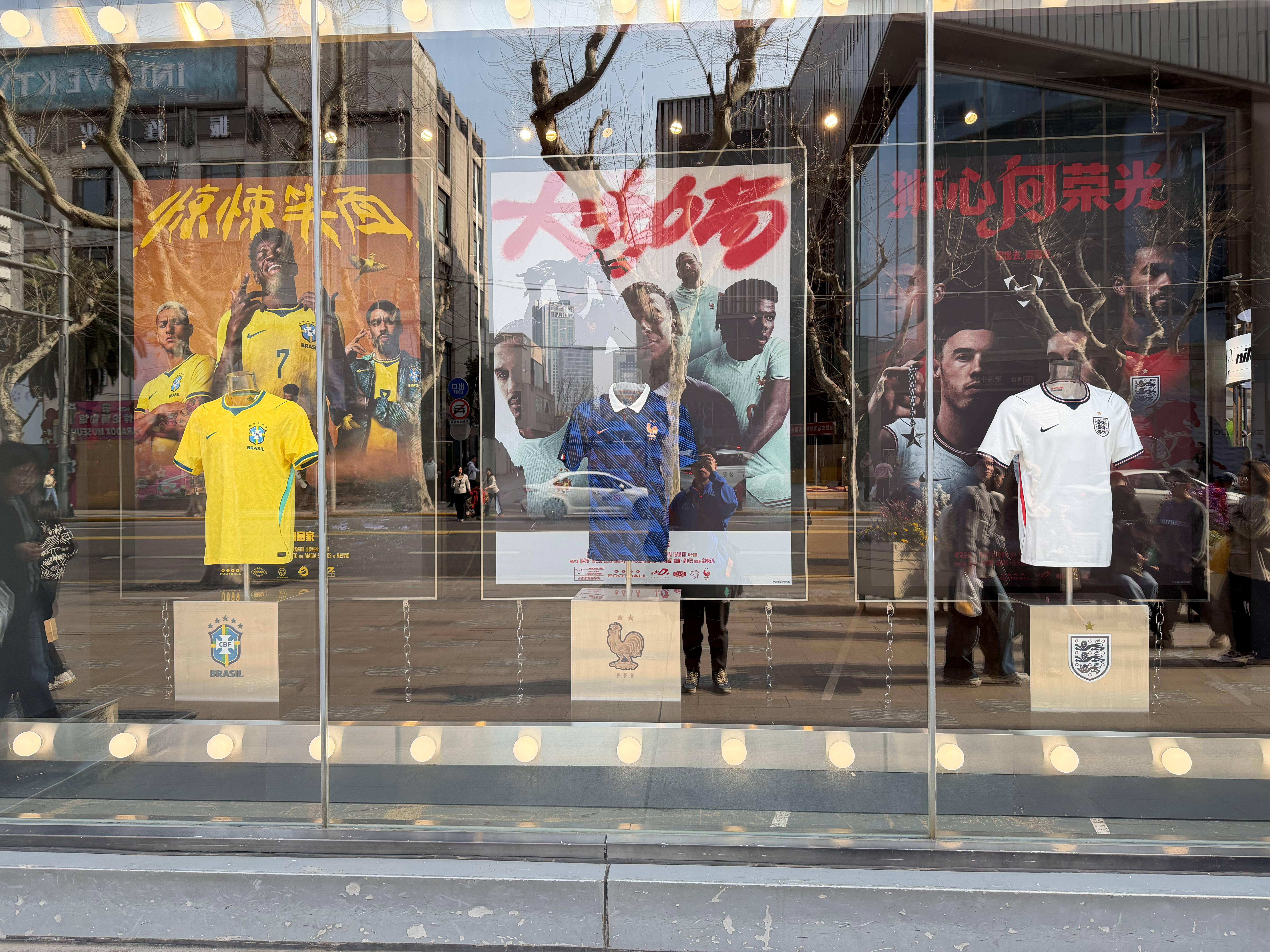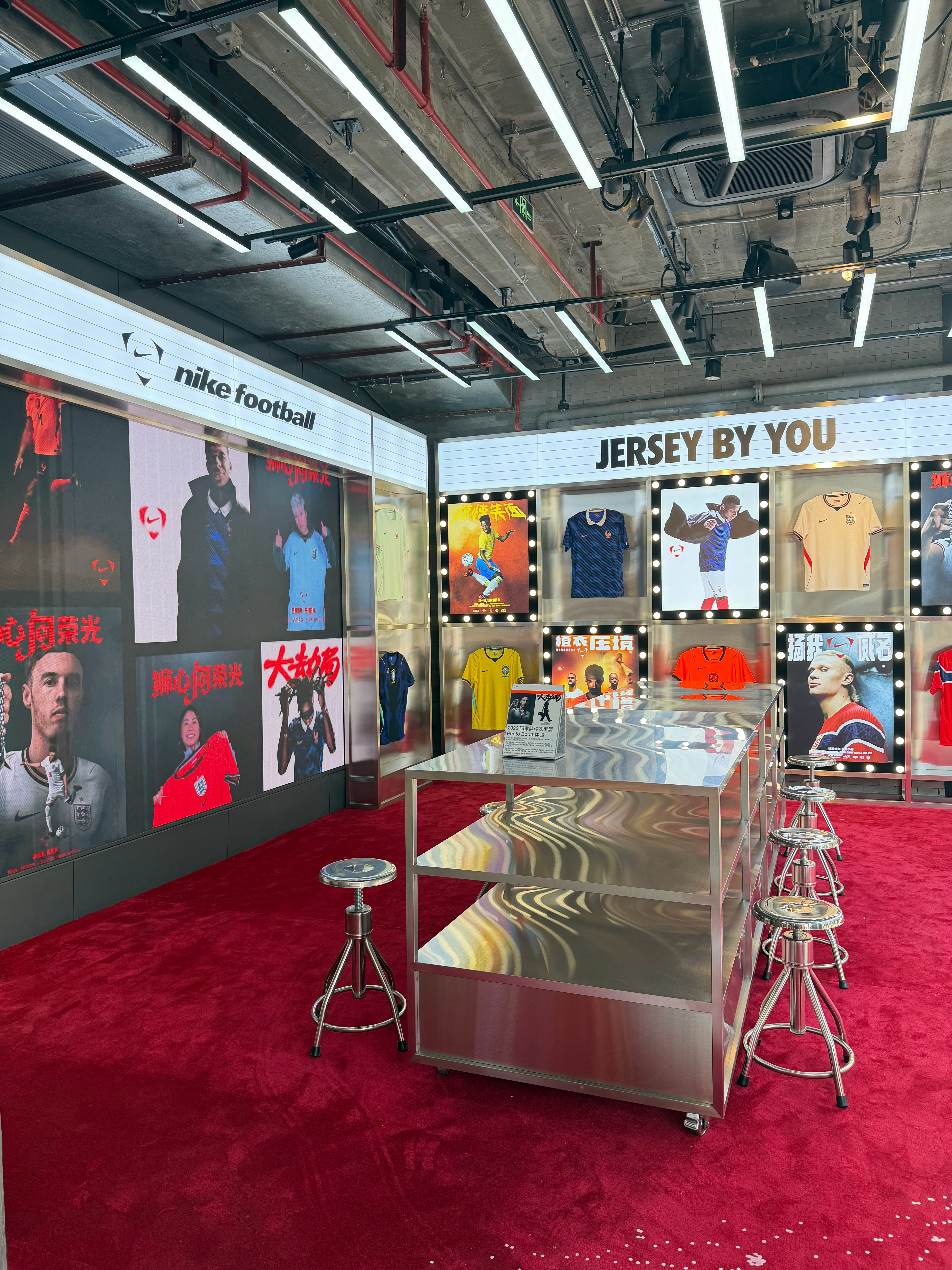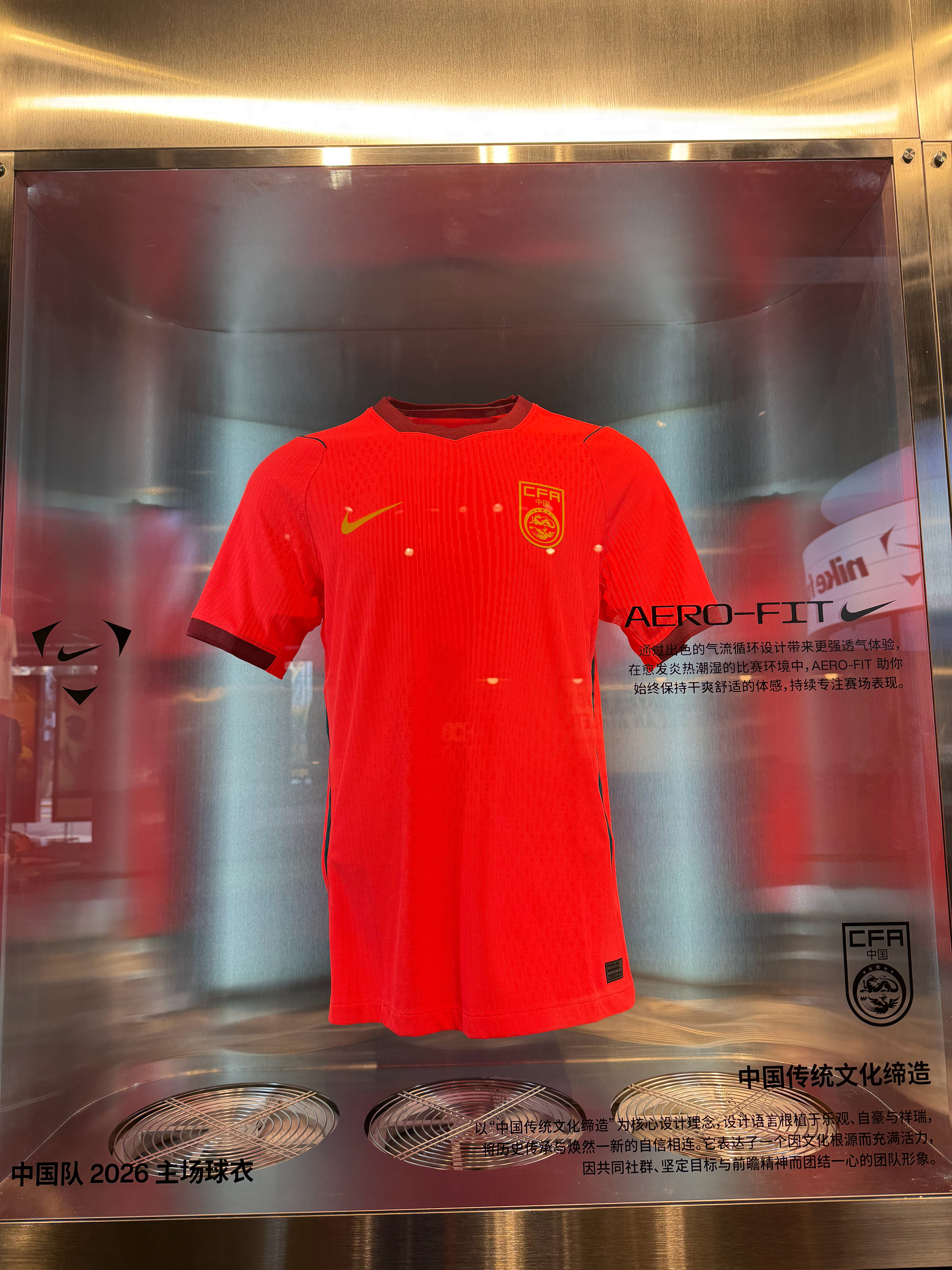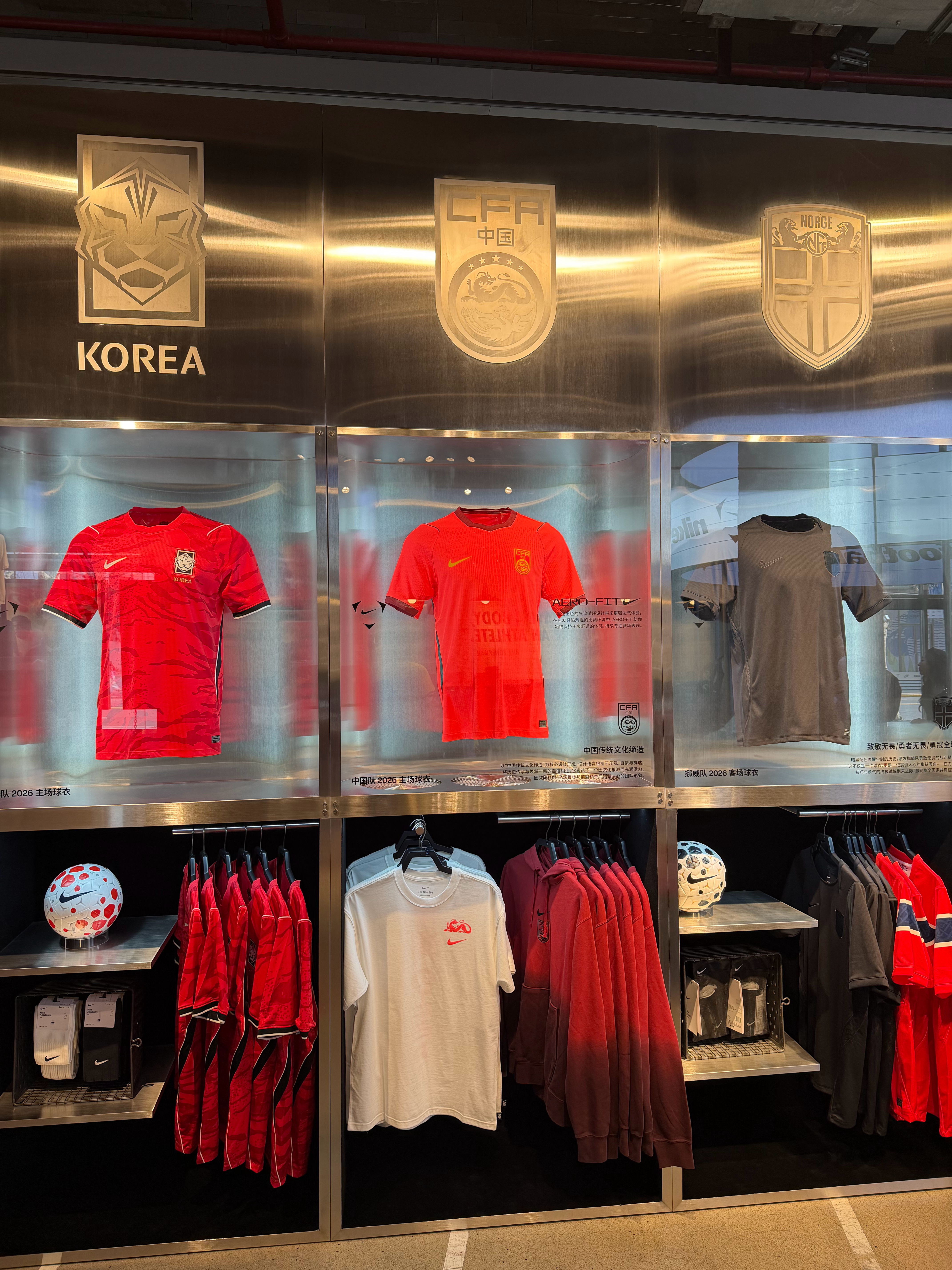 昨日探店-耐克淮海中路店国足主场球员版售罄,只能试穿下巴西的新球衣了。贤聊球衣世