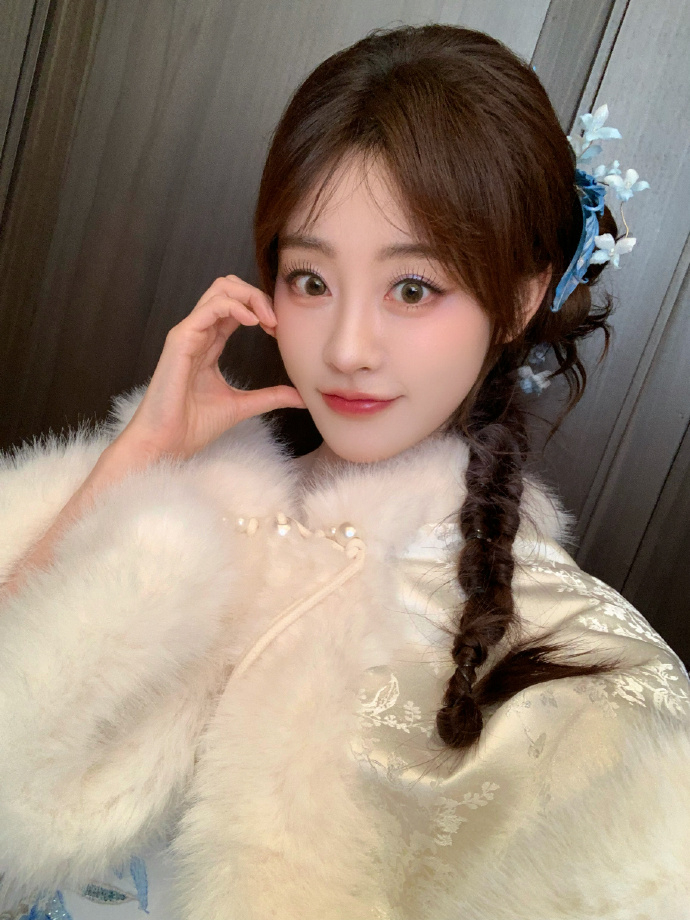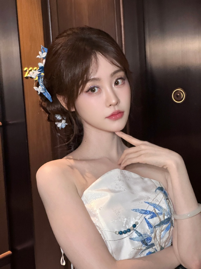 祝绪丹清竹雅韵青花旗袍 侧颜望向远方,蓝花发饰在发间摇曳,青花与竹影的碰撞,让新中式风格更具诗意与美感祝绪丹拍完你的拍你的