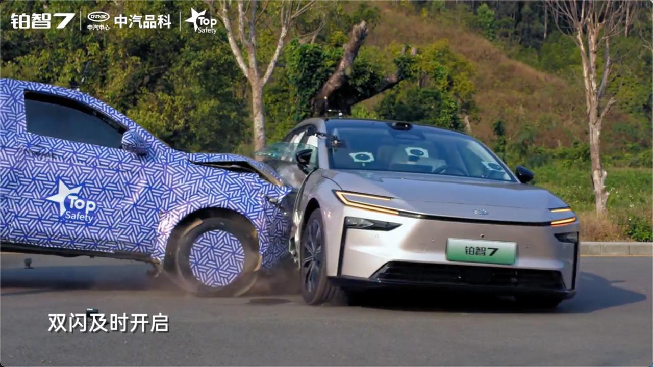 近日,中汽中心对将于3月29日上市的丰田铂智7实施了一系列堪称“地狱级”的极限安全与耐久测试,对车辆全生命周期安全性和可靠性,进行系统“体检”。铂智7用多种事故场景和极端场景下 “电池无泄漏、无起火,整车结构完整、功能正常”的硬核表现,回应了消费者对电动汽车最深层的安全与品质焦虑,也展现广汽丰田在电动化时代对“安心”核心价值的深刻理解与工程兑现。 在最严重的“超高速碰撞、大卡车前后夹击追撞、翻车坠崖”等等极端事故场景,受损电芯是否能保证不起火、不爆炸,直接决定了乘员获救的可能性。“电芯切割”测试,正是面向这类场景而来。 该测试分2轮进行,用于测试的2块单体电芯,均处于100%满电状态,其中一块为全新;另一块则经过了800多次循环充放电、等效行驶里程超30万公里。该测试为“全截面切割”,短路面积远超常规的针刺测试。测试结果显示,被切割的电芯温度无异常升高,静置24小时后无起火、无爆炸,这意味着,铂智7在最严重事故发生后,即使电芯受损,车辆也没有起火危险,确保乘员不受二次伤害;因救援需要而切割车辆时,同样不必担心切割触及电芯而引发火情。 这得益于电芯材料与设计的双重安全保障。铂智7的电芯采用高稳定性磷酸铁锂正极、低活性反应电解液与超高分子量安全隔膜,让电芯的耐热性能、抗短路能力大幅提升。每个电芯都使用了更高成本的贴片保险丝,可在异常时快速熔断,防止拉弧导致热扩散,从而保证整个电池包的安全。电池包的电流采样还采用双电流传感器冗余设计,为电池安全、能量管理、电机控制等提供了坚实的数据基础。 在郊外、乡村、工地、修路等地方驾驶时,难免因路面不平而托底。在无路灯的十字路口,因观察不足,有时候也会遭遇另一方向来车的侧面碰撞。“异形刮底叠加侧碰”测试,考验的正是这些意外场景下的电池包整体的被动安全,以及整车对人员防护、救援效率、二次事故防范等方面的全方位考量。 异形刮底测试,采用高19cm的异形尖锐硬物刮底2次,分别作用于电池包下方的中部和侧面。刮底后,电池包未冒烟/未起火/未爆炸,电解液未发生泄漏,可见一般的刮底事故不会对铂智7的电池包造成损伤。 随后实施的60km/h横向来车撞击,模拟的则是典型“十字路口碰撞事故”。测试结果显示,在巨大冲击力下,乘员舱结构保持完整,A、B、C柱未发生结构失效,为乘员保留了充足的生存空间。车辆的约束系统响应精准迅速,预紧式安全带及时点爆收紧,侧气帘、侧气囊及远端气囊(前排中央气囊)均及时点爆、正常展开。乘员在该类别事故中,几乎可以免受伤害。 电池包在经历刮底与猛烈侧撞后,未冒烟、未起火、未爆炸,电解液无泄漏。说明动力电池电芯毫发无伤。碰撞后,高压立即下电,防止乘员或救援人员意外触电,更可预防热失控发生。低压系统继续工作,让车辆双闪自动开启,及时提醒周围车辆,避免二次事故——这在夜间无路灯的郊外,或者车辆被撞入路边阴暗处的时候,尤为重要。E-CALL紧急呼叫服务及时启动,人工客服立即接入联系乘员,确认状况——万一乘员受伤、被困,车机屏幕受损、手机在事故中遗失、受损或无法触达,人工客服就是唯一的救援联系方式。非碰撞侧车门可正常打开,乘员可以从非碰撞侧直接逃生,救援人员也可以从该侧更快捷地施救。 这一成绩的背后,是铂智7极高规格的车身用料、优秀的结构设计和高标准的验证要求。白车身中,1000MPa级以上超高强度钢占比达40%,热成型钢占比达30%。其中,1500MPa级材料被集中应用于A/B柱、门槛梁等关键传力路径,而B柱钢材强度更达到2000MPa。在电池防护方面,行业普遍在电池包底部使用780-980MPa材料,而铂智7采用了整面1300MPa的热成型钢防护底板,为电池提供了远超行业平均水平的底部防护。