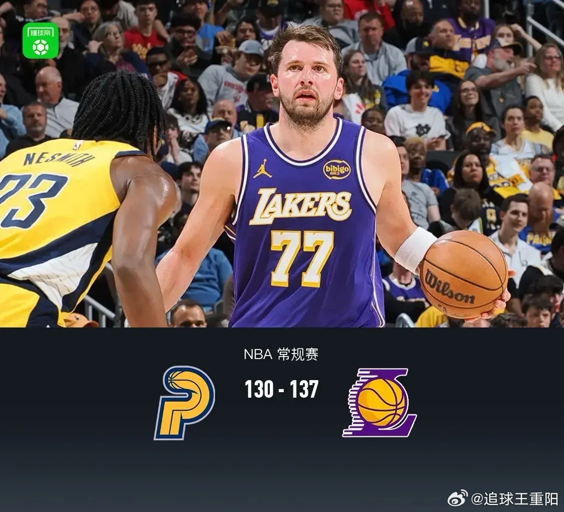 洛杉矶湖人:东契奇,里夫斯,詹姆斯,海耶斯,拉拉维亚。湖人战胜步行者