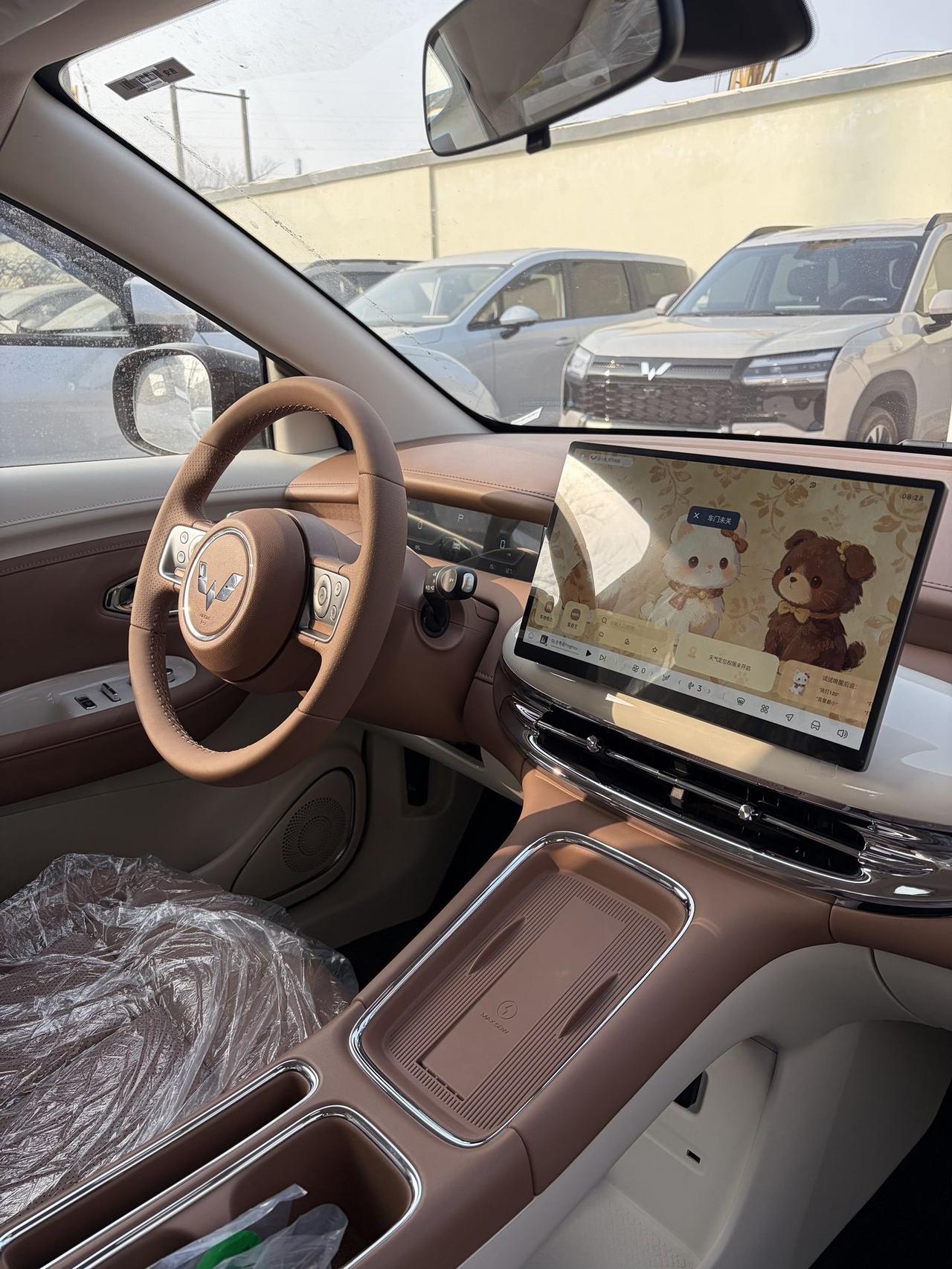 五菱缤果Pro实车曝光!这回缤果家族终于凑齐了 继缤果、缤果S之后,五菱又带来了一款全新纯电小车——缤果Pro。近日我们在街头拍到了实车图,看来离上市不远了,先来一睹为快! 外观延续缤果的圆润风格,封闭式前脸搭配圆形LED大灯,和欧拉好猫有几分神似。尺寸介于缤果和缤果S之间,长宽高4050/1758/1580mm,轴距2560mm。侧面溜背造型依旧灵动,C柱镀铬饰条向后延伸形成悬浮尾翼,视觉效果很有辨识度。悬浮式车顶、半隐藏门把手、16英寸花瓣轮毂统统安排上,配色也很年轻——绿悠悠、灰萌萌、白绒绒,听名字就够讨喜。 内饰像是缤果和缤果S的结合体。12.8英寸悬浮中控大屏+内嵌式矩形仪表屏,搭载灵语智能系统,支持AI大模型和手车互联。马鞍棕+奶盐米双拼色,搭配钢琴烤漆、镀铬饰条、电子怀挡,氛围感做得挺到位。五座布局,后排座椅可4/6放倒,还配了电动尾门,实用性能打。 动力方面,搭载65kW驱动电机,提供31.9kWh和37.9kWh两种电池,CLTC续航分别为330km和403km,城市代步足够用了。 缤果Pro的到来,让缤果家族的产品线更完整了。实车已经亮相,上市应该不远,感兴趣的朋友可以留意一下。【来自懂车帝车友圈】