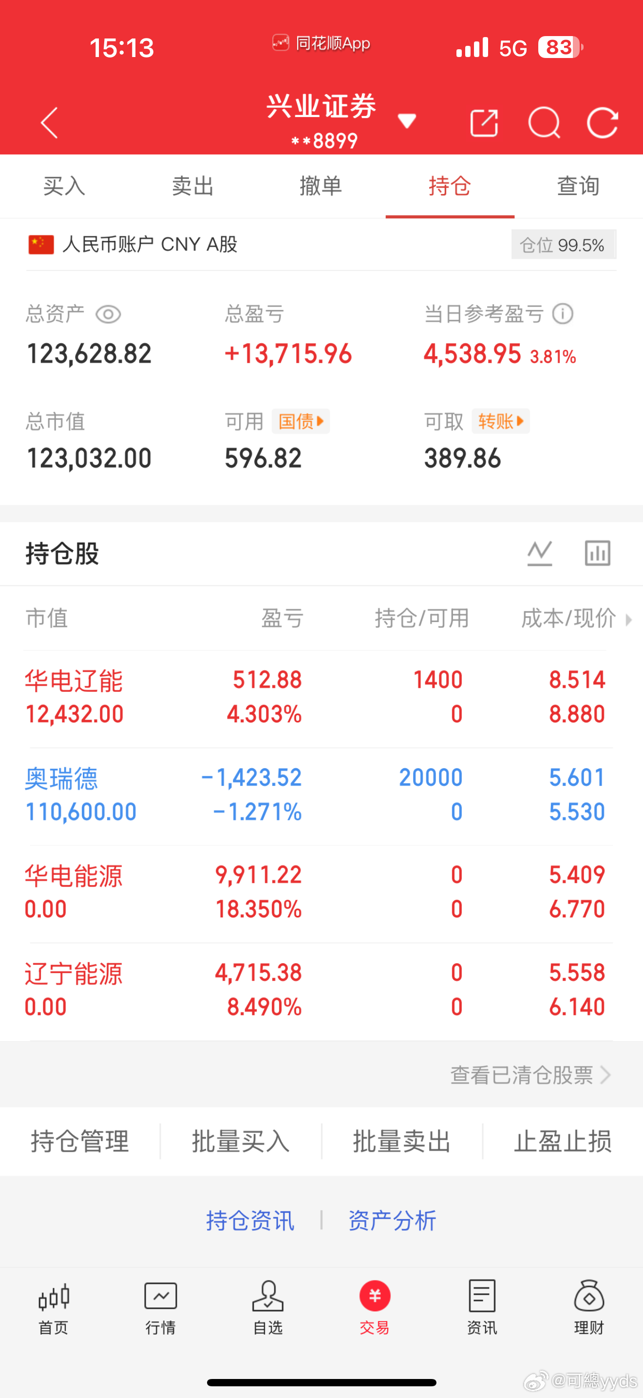 持仓1成华电辽能,9成算力奥瑞德。