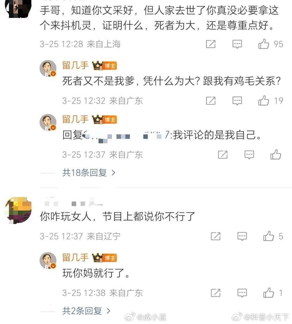 留几手发的原文及回复:是真的不尊重人啊还1000多万的粉丝呢