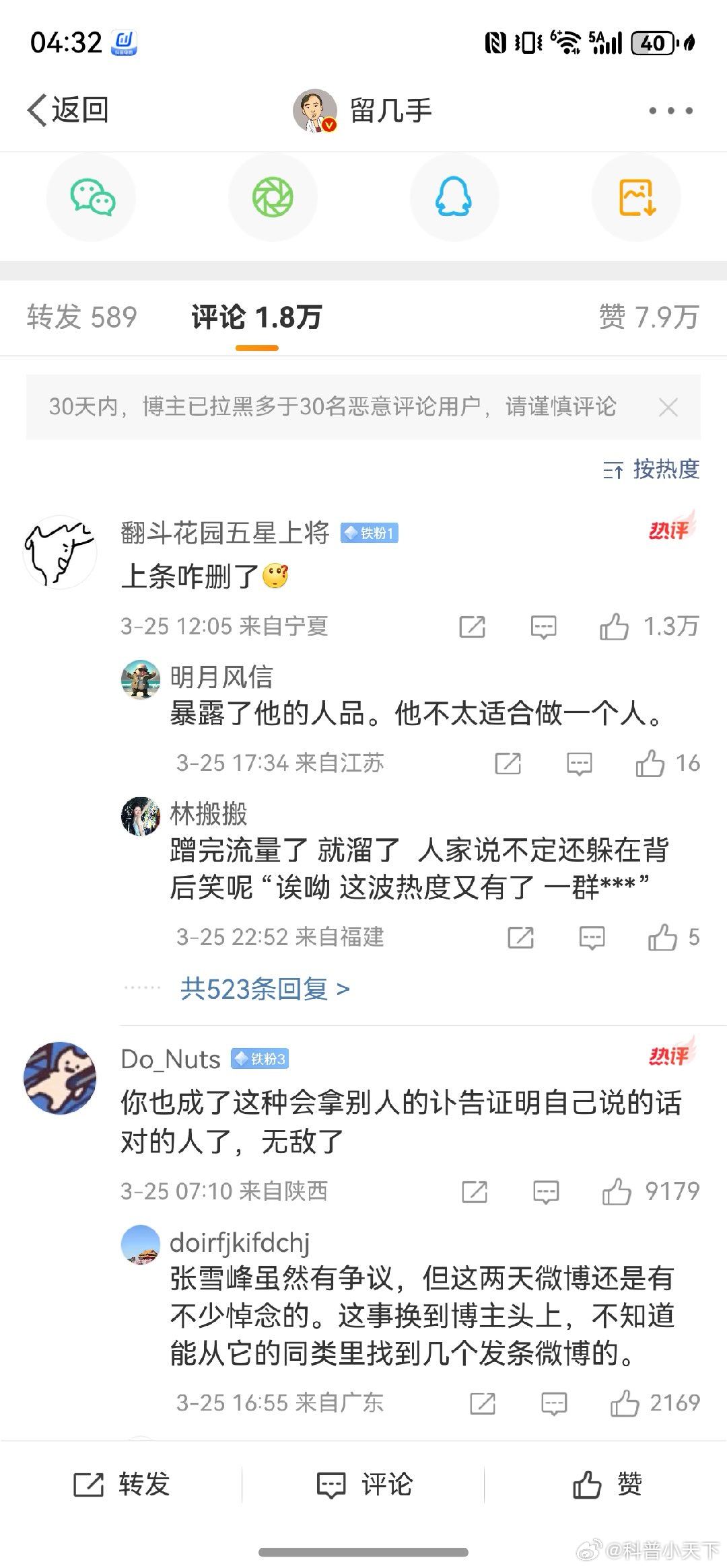 挖槽!留几手被禁止关注!本想炮轰网友博人气结果自己栽了个大跟头他这种素质的也不知