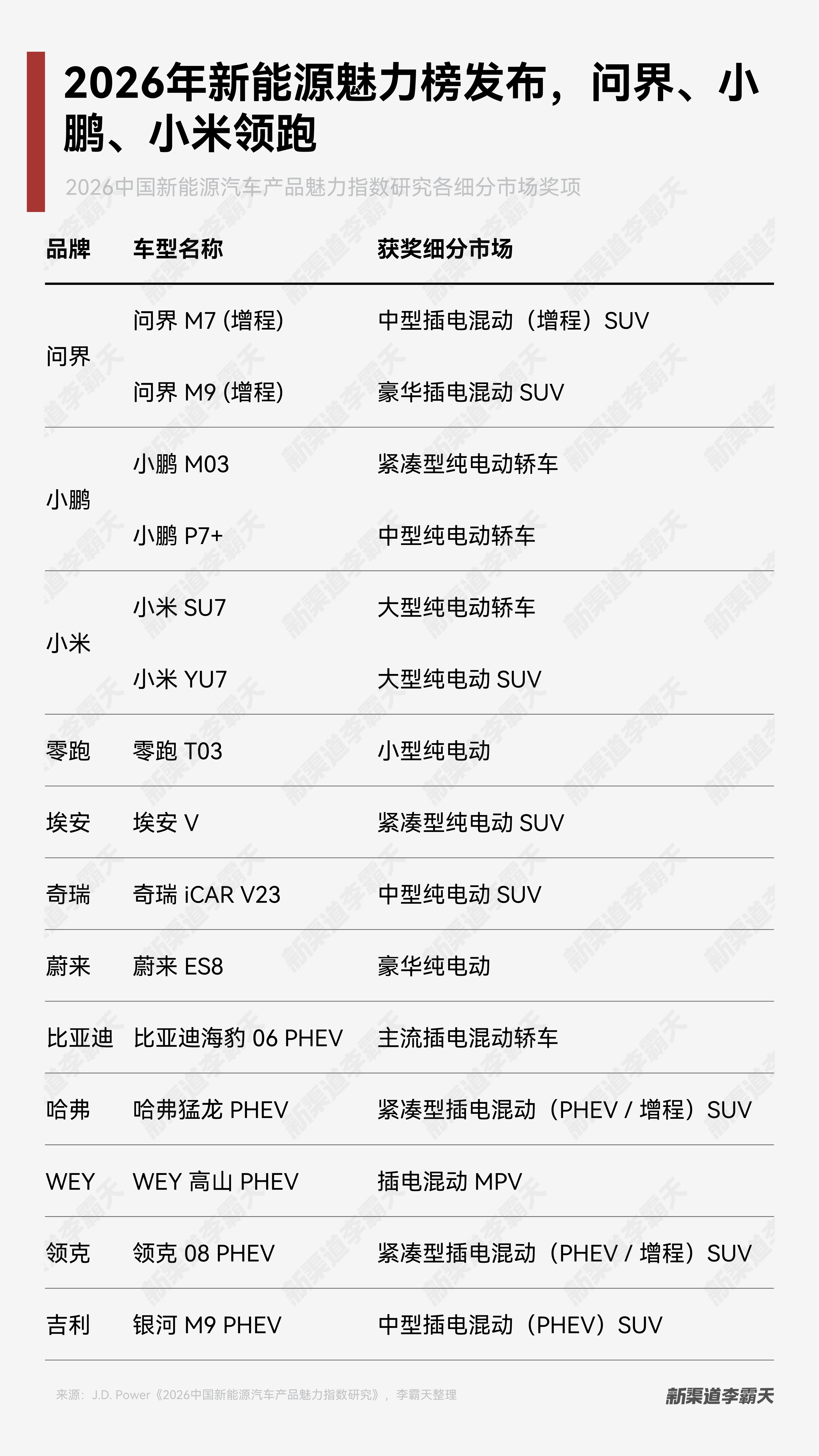 2026中国新能源汽车产品魅力指数研究发布,问界、小鹏、小米领跑~