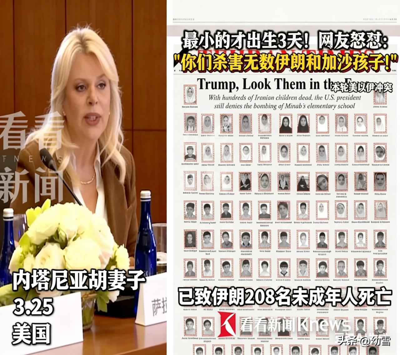 为34岁儿子喊冤, 总理夫人哭错坟头, 加沙的婴啼已埋在废墟下。 【华盛顿的眼泪,加沙的鲜血】 当地时间3月25日,以色列总理夫人萨拉在华盛顿的一场峰会上情绪激动。 她向在场的美国第一夫人梅拉尼娅“诉苦”,称自己34岁的长子亚伊尔,仅仅因为“总理儿子”的身份,就遭受网络羞辱与暴力攻击。 她呼吁:“我们必须保护所有儿童。” 这番诉苦迅速点燃全球社交网络。无数网友用冰冷的数字与画面,给出了另一种“暴力”的定义: 在加沙,联合国报告显示,已有超过1.3万名儿童在冲突中伤亡,平均每天有数十名儿童死去。 在伊朗,因袭击丧生的儿童中,年龄最小的受害者仅出生3天。 而萨拉口中“受辱”的长子亚伊尔,被媒体曝出常年居住美国迈阿密,其社交媒体充斥着挑衅言论与奢华生活。 当权者口中的“儿童”,是34岁、生活在绝对安全中的“巨婴”。 废墟之下的“儿童”,是连名字都来不及拥有、生命以小时计算的新生儿。 他们所谴责的“暴力”,是屏幕后的批评文字。 但是亲手施加的暴力,是钢铁与炸药构成的倾盆大雨。 【网友的墓碑,刻在评论区】 “她在为镀金的羽毛哭诉,却对满地的尸骸视而不见。” “这不是保护儿童,这只是特权者的自怜。” “加沙的孩子不会上网,所以他们活该发不出声音?” 图片来源于视频截图,侵权请告知必删