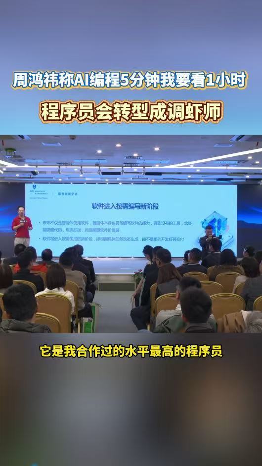 周鸿祎称AI编程5分钟我要看1小时别再沉迷写死代码,AI浪潮下程序员终要转型,学会调教AI当“调虾师”,才是破局关键!周鸿祎称程序员会转型成调虾师