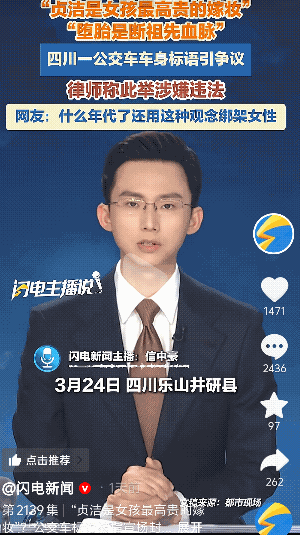 “这有理吗?”四川乐山,“贞洁是女孩最高贵的嫁妆,堕胎是断祖先血脉,是不孕不育的源头!”这一公交车上的标语引发了争议…… 3月24,有网友发现一辆公交车的车身贴了一些极具争议标语,随后在网络引发了热议。 而追溯这一标语的源头,有工作人员表示,这一标语其实是某奶粉企业投放的广告语,大约是去年8月份的时候投放的, 而带有这个标语的公交车只有1辆。其实原来的本意是为了教育年轻人要树立正确的伦理观。并没有任何恶意!表示可能在语言表达方式上很不妥。 随后,相关部门的工作人员表示,这辆公交车车身的广告标语已经撤下,也已经报告了领导,已经做了相关的处理! 评论区里,有网友表示,这话说得没毛病,让人觉得不适应的人一定是心里有愧,于心无愧,才能坦然面对。 甚至有网友觉得:这个标语很正能量,到底是谁在反对洁身自爱的传统? 同样也有网友表示:把女孩去掉,因为男女都要洁身自爱!不应该只说女的,不要带这种冒犯女性的内容! 还有其他表示:照片图片被恶意遮挡男孩两个字,觉得这是在跑偏。对美德的误解! 小编觉得其实不管是以前还是现在,不管男女都好,都需要洁身自爱,要树立好正确的爱情观,在自由恋爱时代,洁身自爱,毕竟爱情病现在这么泛滥!稍微不慎,就后悔莫及。 情感 男人 女人 情感情感 传统 信息来源:闪电新闻