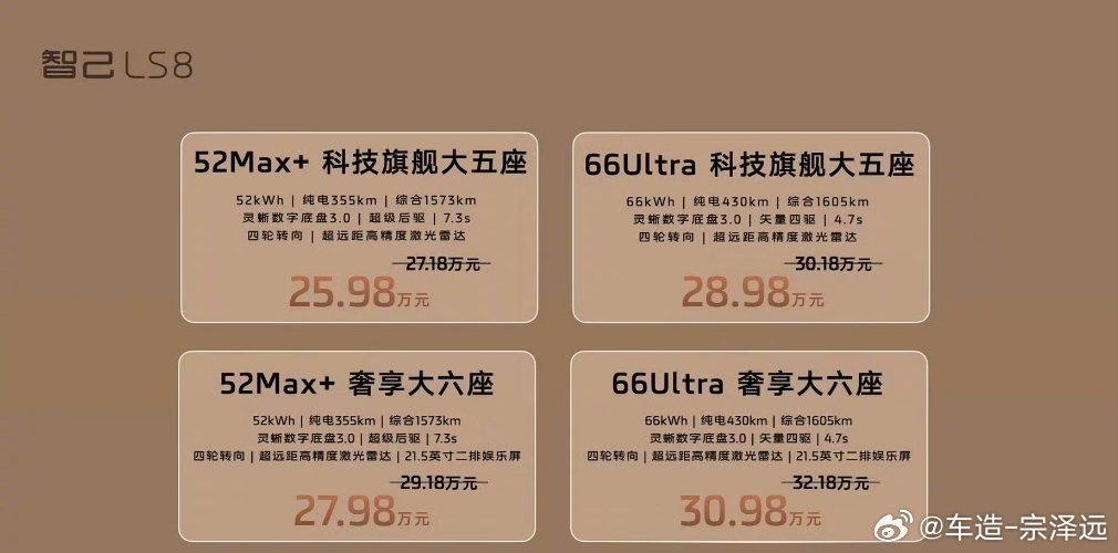 智己LS8这个预售价真心有点恐怖啊!25.98万-30.98万!这还只是预售价车长过5米、大电池增程、后轮转向,都标配520线激光雷达和线控转向之类的选择价格也都很便宜今年后面要发布的各种8系看到智己LS8这定价估计头都大了!智己ls8震撼预售25.98万元起