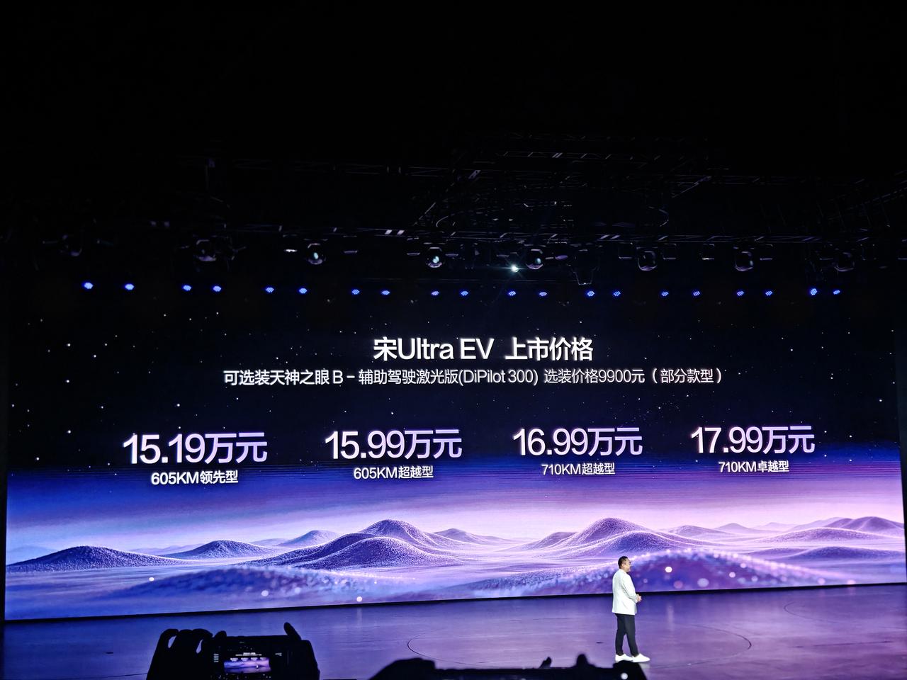 15.19万到17.99万元,比亚迪宋Ultra EV价格出来了! 不得不说,标配1500W快充和第二代刀片电池的B级纯电SUV,这个价格真的很实惠了。 而且座椅加热/通风、前排远端气囊、TBC爆胎稳行系统等100多项配置全部标配。 如果不是特别在意智驾,605KM卓越型已经够用了。比较在意智驾,那肯定高配加选装天神之眼B。 宋Ultra EV高配版还有冷暖冰箱、16扬声器等诸多配置,加上前排可放平的大床模式,感觉这款车特别适合那些喜欢户外露营的人,一台车开出去,帐篷什么的都省了。 比亚迪宋UltraEV 比亚迪宋上市发布会