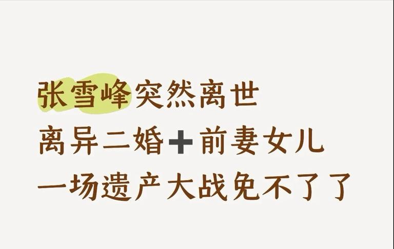 张雪峰老师去世后,二婚老婆和原配,以及张老师女儿和母亲,一场遗产的争夺战,不可避免!很明显,张老师的母亲毫无疑问的会站在原配这边,血浓于水,原配生的他们的女儿 但如果张老师没有提前立遗嘱的话,按法律可能不利于张老师原配,女儿和母亲,并且张老师四十来岁,身强体壮,立遗嘱的可能性不大 在原配和二婚老婆时间之间,张老师中间谈的女朋友,在遗产争夺中,直接出局,和她没有任何关系