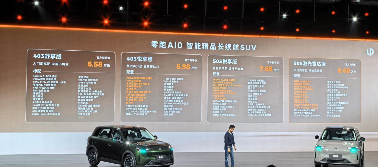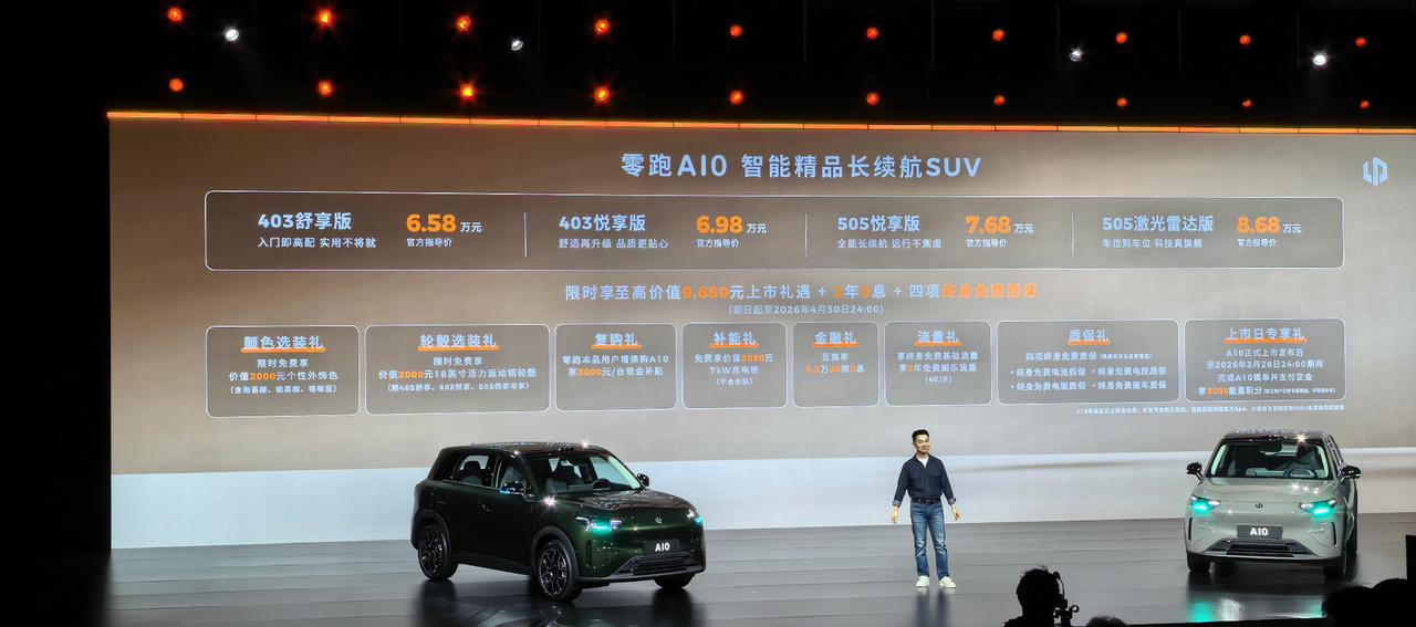 车盟快讯:今晚,零跑A10正式上市,这台车定位准A级SUV,新车推出4个车型,官方指导价:6.58万元~8.68万元;限时可享7重好礼,详情见图。这次零跑A10不是简单的“价格屠夫”,而是用技术和规模精准解决了8万级小型SUV的“窄、糙、笨”痛点。88.1%得房率、505km续航、8295芯片、油冷电驱,还将激光雷达这些配置下放到10万内,你们觉得这个价位的零跑A10能打吗?