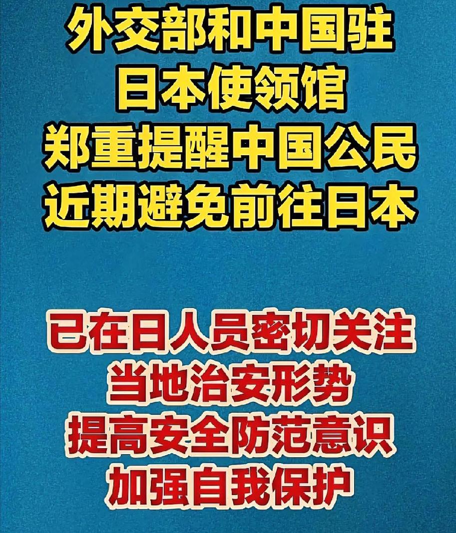重要提醒!外交部和中国驻日本使领馆呼吁:近期别去日本 朋友们注意了!外交部和中国驻日本使领馆郑重提醒,咱们中国公民近期尽量别去日本。要是已经在日本的,可得密切关注当地治安情况,提高安全防范意识,好好保护自己。这提醒分量不轻,大家可得上心,赶紧转发给身边计划去日本或者在日本的亲友!你们怎么看?中方对日本表态 中方对日本态度 中国驻日本