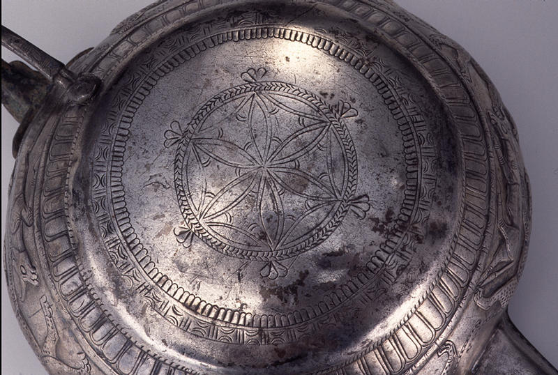 日本美秀美术馆藏公元前九世纪至前七世纪伊朗西北部地区制作的 猛兽捕猎纹银匜