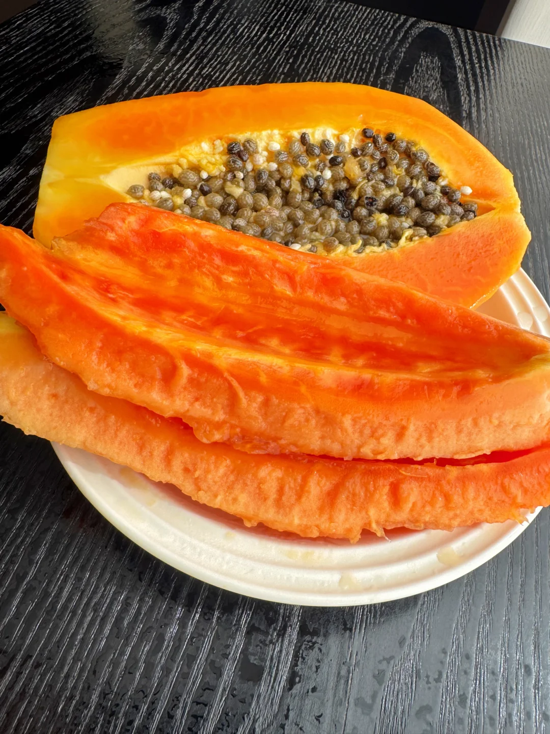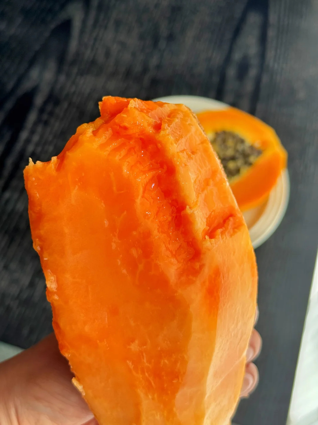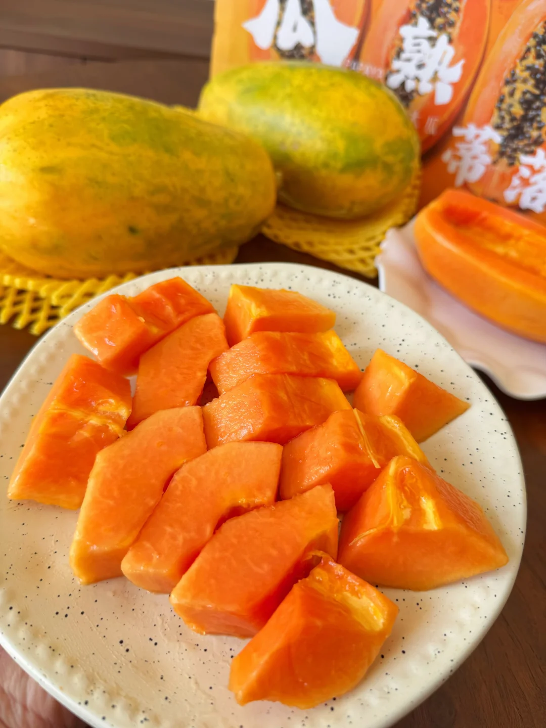 爱吃木瓜的应该都知道 市面上的都是普通木瓜 吃起来果肉不够软糯,甜度也很低 只有海南三亚的大青品种才是纯甜的 吃起来果肉软软糯糯的,一点异味都没有 我家卖了三年,老顾客也回购了三年 真的相信我一分钱一分货,便宜的没有好货哦
