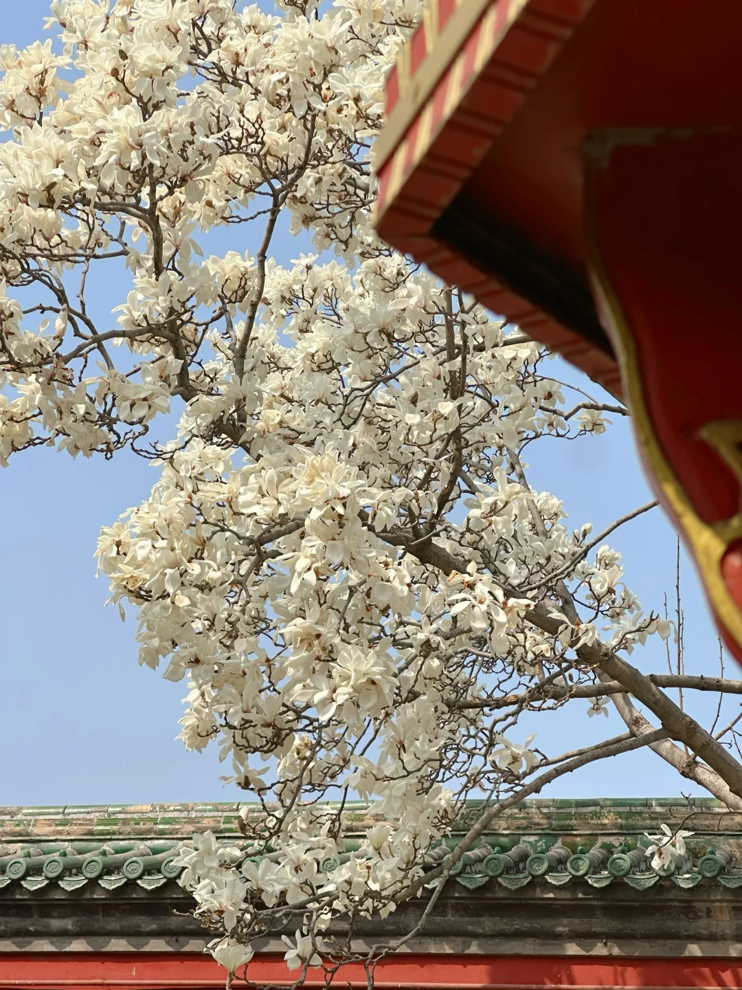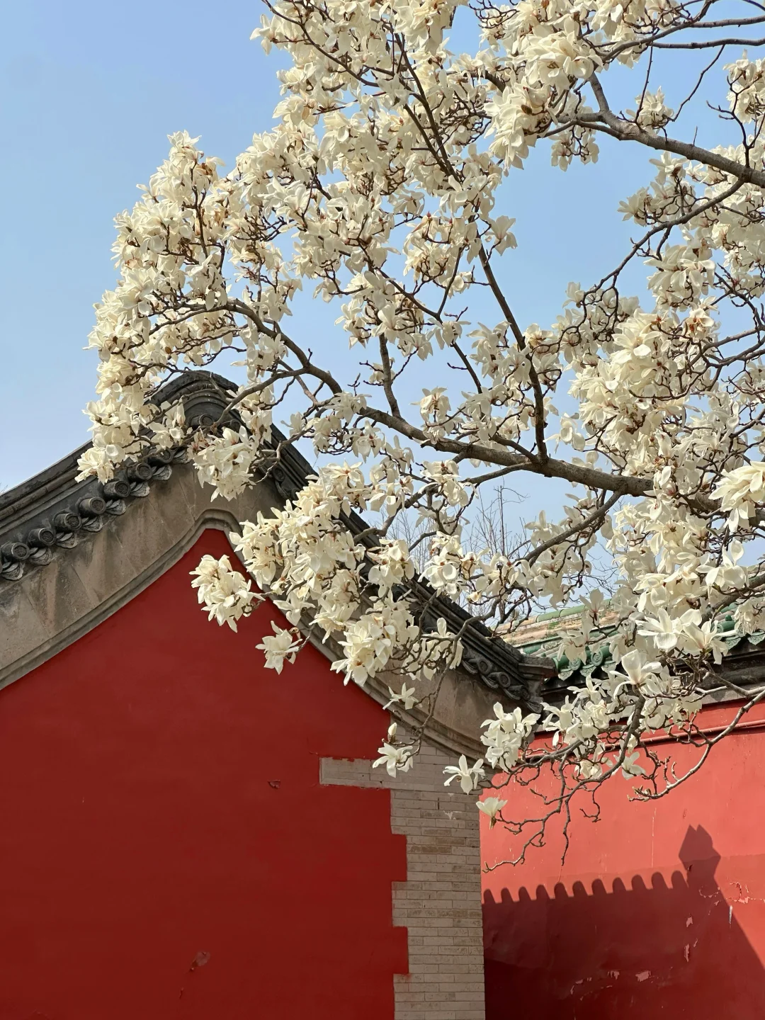 红墙和白玉兰真的好配啊 斋宫玉兰花已盛开70% 本周放心冲! 📍地坛公园西门(离斋宫仅) 🚇2号线安定门(B口) 🎫60岁以上老人免费,记得带身份证