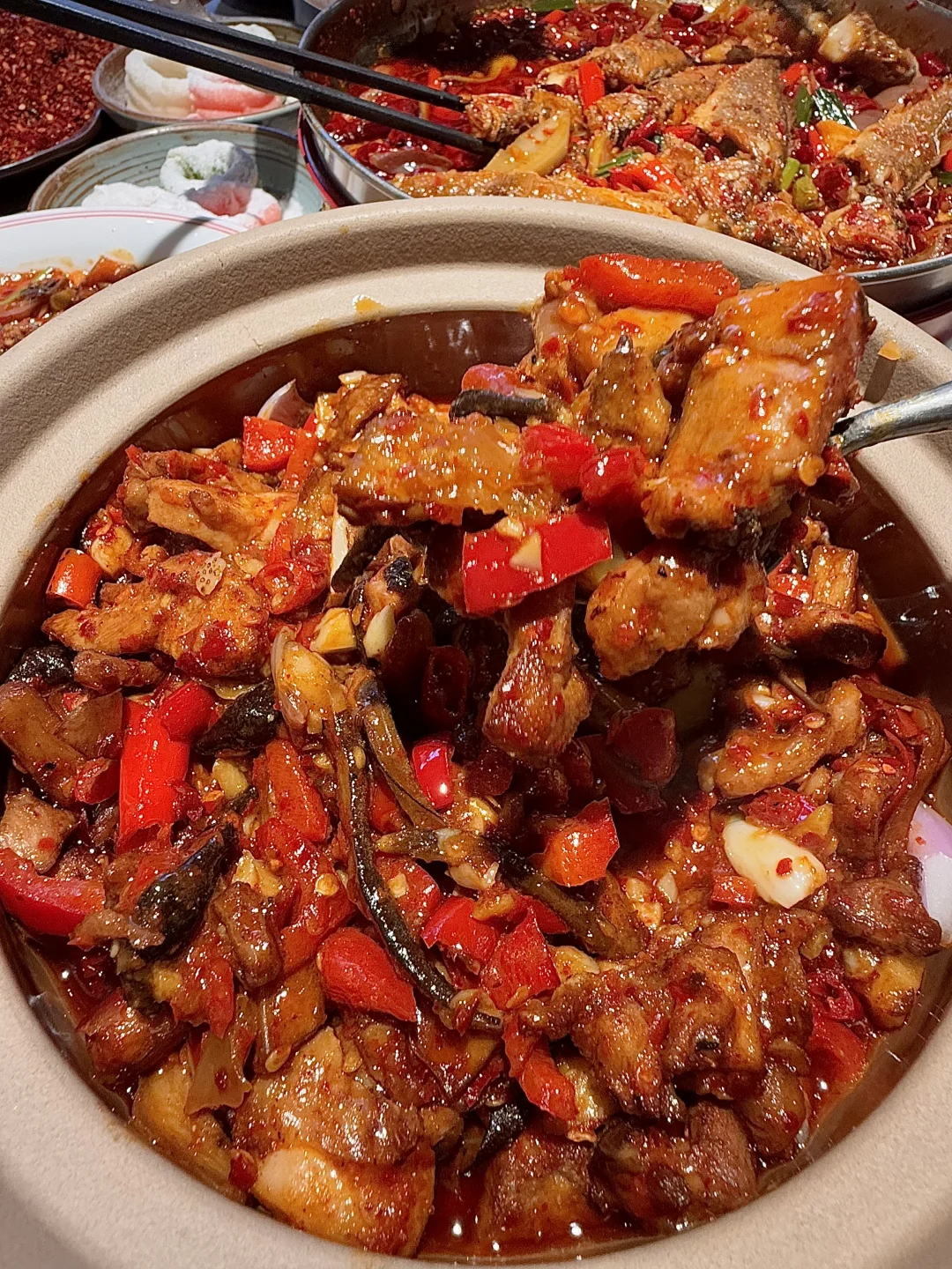 😭😭五刷了!西安极品!巨巨好吃的江西鲜辣小炒!!!!求求你们都去吃!!!! 魔鬼辣鸡翅超级无敌辣!!嗦一盘能辣出流泪辣到流三斤汗!!但还是吃的停不下来😭😭😭 糯叽叽鲜辣鸡爪超级入味儿,鸡爪一抿脱骨,年糕也很入味!蟹脚捞粉和景德小黄鱼也很好吃!! 正经的江西辣!!还有老南昌啤酒鸭,宁都黑鸡枞菌三杯鸡,野小葱猪肝爆炒黄喉蟹脚拌粉……都是无敌下饭菜!很辣很爽好好吃! 建议不能吃辣的千万别轻易尝试江西辣,微微辣就可以了,每一道菜都好吃!!可以反复冲!