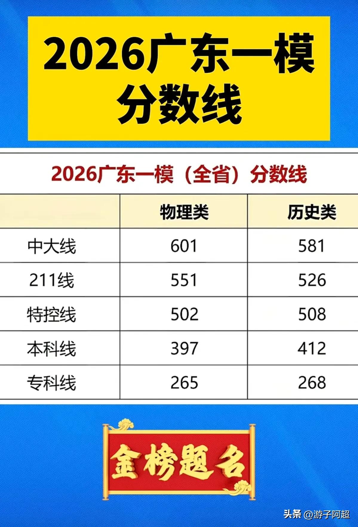 2026年广东一模各地市分数线已公布。 今年参加广东一模考试的地市不多,官方划线也已公布,其中物理类本科批次录取最低控制线为397分,历史类则为412分。 根据各地市统计数据,低分段考生分布呈现高度集中态势,最低392分即有机会被本科层次院校录取。