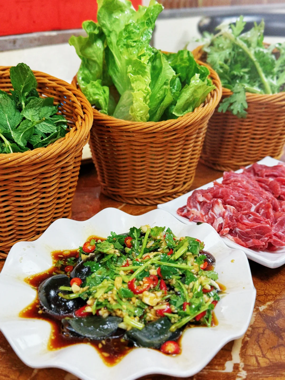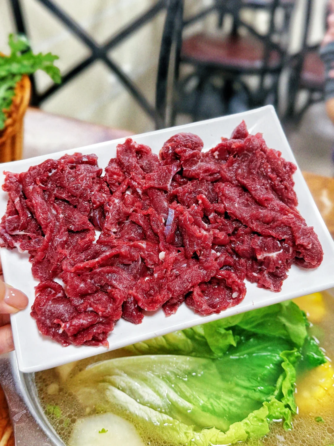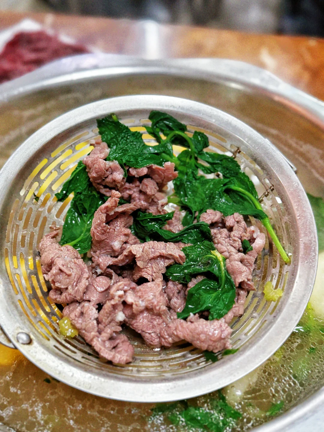 现点现切 新鲜没话说 牛肉脑袋冲冲冲 好好的减脂餐 因为胸口油和皮蛋…… 哈哈哈哈 但是好吃呀 点份薄荷叶 跟吊龙一起下 香迷糊了