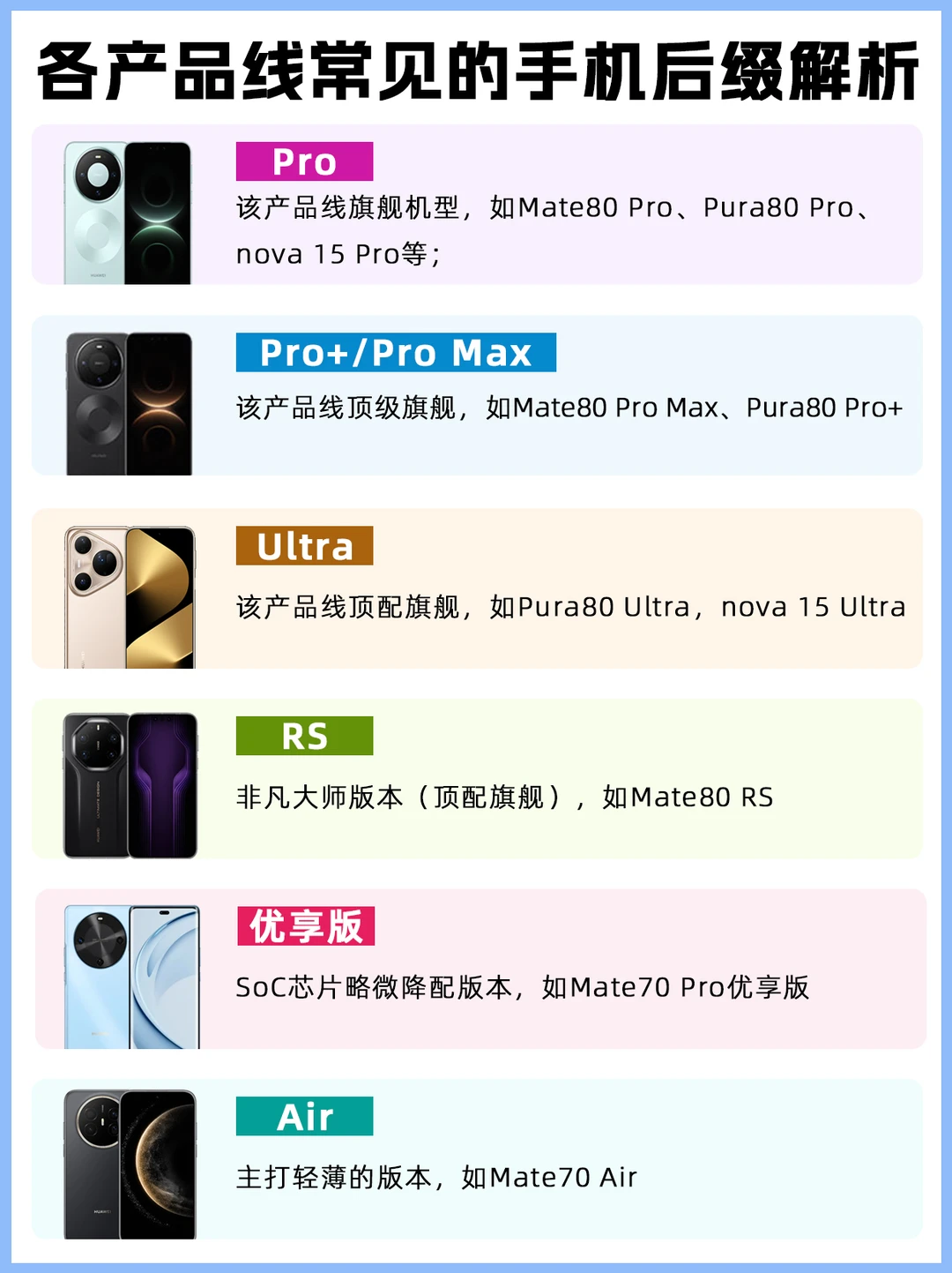 - Pro:产品线旗舰款(比如Mate80 Pro)