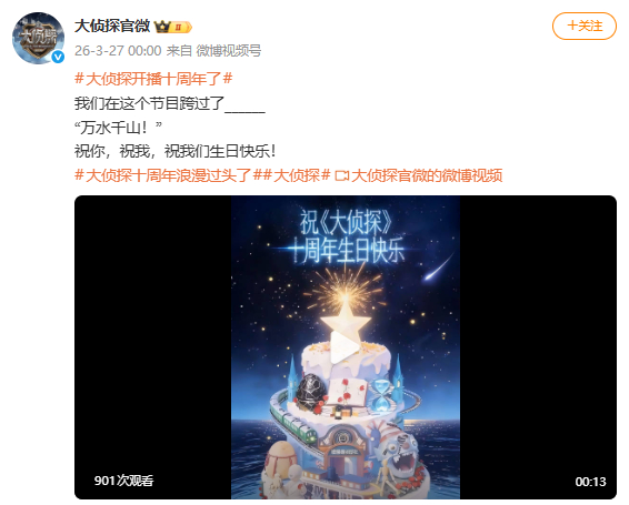 大侦探播出十周年 大侦探播出十周年了,我们真的一起走过了万水千山
