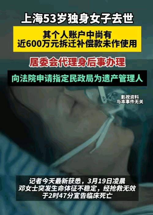 “钱还在,人没了!”上海,一独居女子被发现在家中离世,等人们整理她的遗物时才发现,她银行账户里竟然还躺着600万元没有动,生前却过得极其节俭,一个人住,没有丈夫,没有孩子,也几乎不和邻居来往。 俗话说“人为财死,鸟为食亡”,可这位女子的遭遇,却偏偏是钱攒下了,人却没了,实在让人唏嘘。 这件事发生在今年3月19日,53岁的她在冷清的出租屋里悄然离世,平日里独来独往,身边没有亲人照料,等到被人发现时,一切都晚了。 谁能想到,这个看着穷困潦倒、省吃俭用的女人,手里竟握着几百万的身家,这巨大的反差,着实让人心里发酸,难道拼命攒钱,到头来只是一场空吗? 这位女子一生未婚,无儿无女,父母也早已离世,身边连个亲近的亲戚都没有,彻底活成了一座孤岛。 她住的屋子逼仄昏暗,满是灰尘和霉味,丝毫看不出是有钱人的住处。 平日里,她过得抠抠搜搜,穿着洗得发白、严重脱色的旧衣服,脚上踩着破旧的布鞋,过日子能省则省。 为了几毛钱的菜钱,她都会和菜贩讨价还价,一日三餐随便对付,从不舍得为自己多花一分钱,在外人眼里,她就是个日子过得紧巴的普通人,谁也不会把她和百万身家联系在一起。 这笔600万的巨款,并不是她打拼赚来的,而是早年老家房子拆迁的补偿款。 对她来说,没有家人依靠,没有亲情慰藉,这笔钱就是她唯一的底气,是她对抗生活未知风险的全部依靠。 她觉得只要账户里的钱不动,自己心里就踏实,哪怕日子过得苦一点、累一点,也总比手里没钱、无人依靠要强。 她把钱死死攥在手里,一分都舍不得挥霍,本想靠着这笔钱安稳度日,却没想到,还没来得及好好享受生活,就匆匆离开了人世。 按照法律规定,因为她没有配偶、子女、父母等法定继承人,也没有留下遗嘱,这笔无人继承的遗产,最终只能依法收归国家,用于公益事业。 她一辈子省吃俭用,抠着自己的衣食住行,攒下的这笔钱,没能给自己换来半点舒心日子,最后也没能留在自己身边,半生的节俭和坚守,终究落了一场空。 其实我们身边,有不少人像她一样,拼命攒钱、舍不得花钱,把存款当成安全感的唯一来源,总想着等以后、等有钱了再好好生活,可日子一天天过去,却始终舍不得对自己好一点。 钱本来是为人服务的,不该成为困住自己的枷锁,更不该让我们为了攒钱,忽略了当下的生活,冷落了身边的温情。 比起冰冷的数字,好好活着、珍惜当下、善待自己,才是更重要的事,别等到最后,钱还在,人却没了,只留下满心的遗憾。 大家对此怎么看?欢迎评论区留下您的观点!