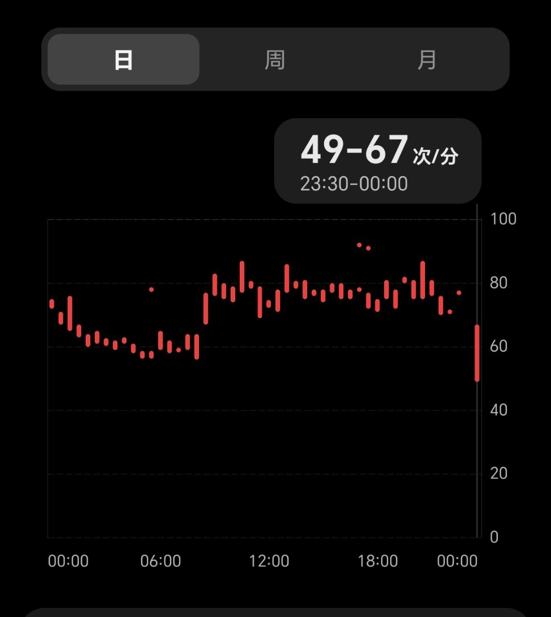 卧槽刚才准备睡觉,看了一下手表,心跳52,正常么。看了曲线图,最后是突然降低的。