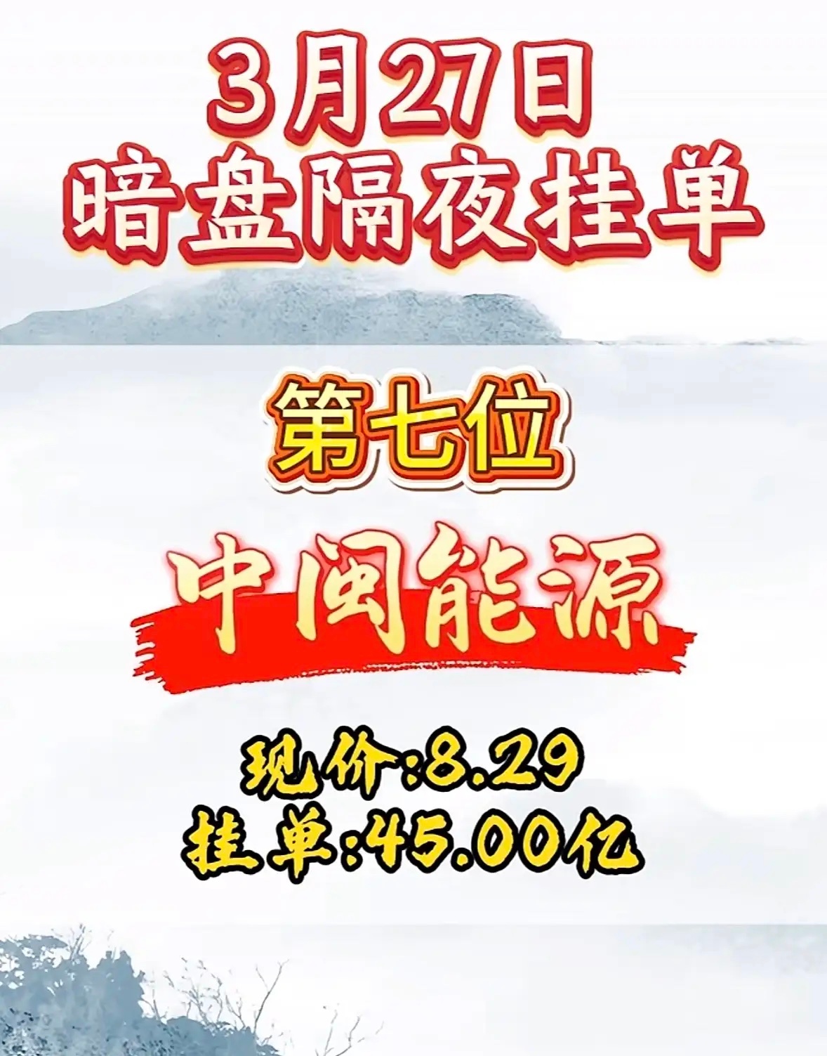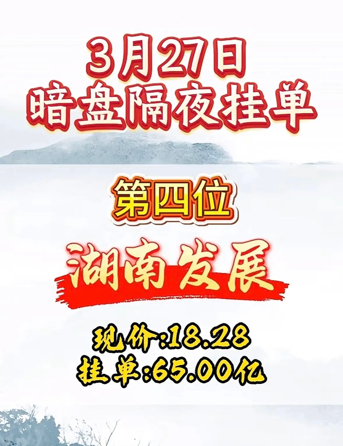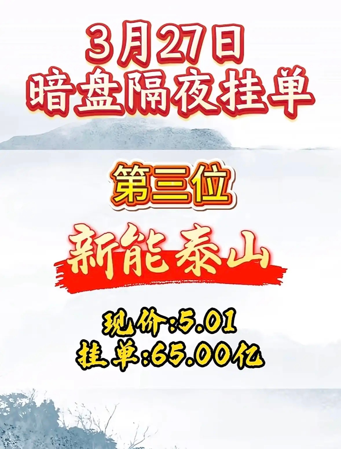 3月27日周五暗盘隔夜挂单排行榜揭晓