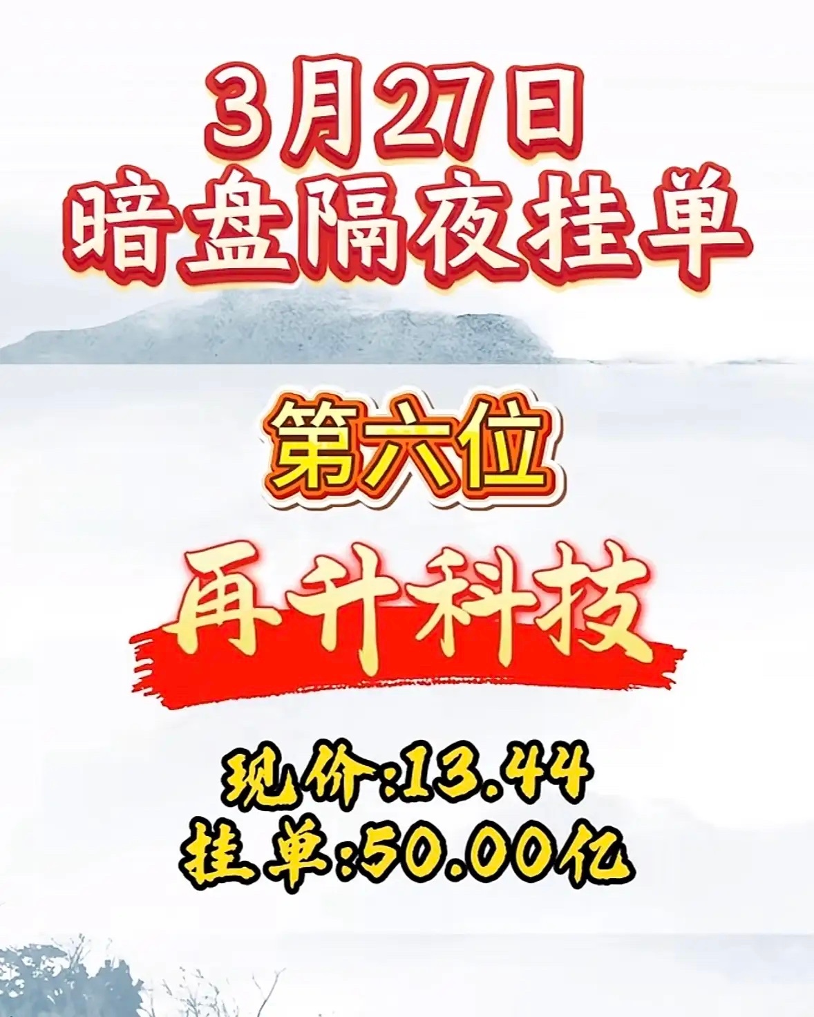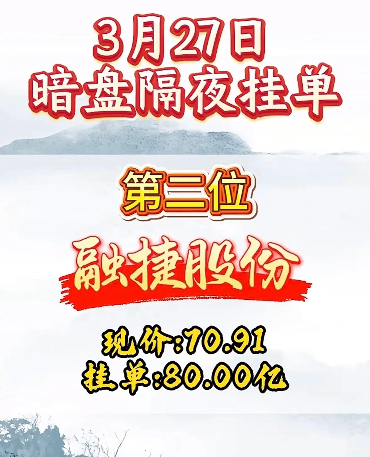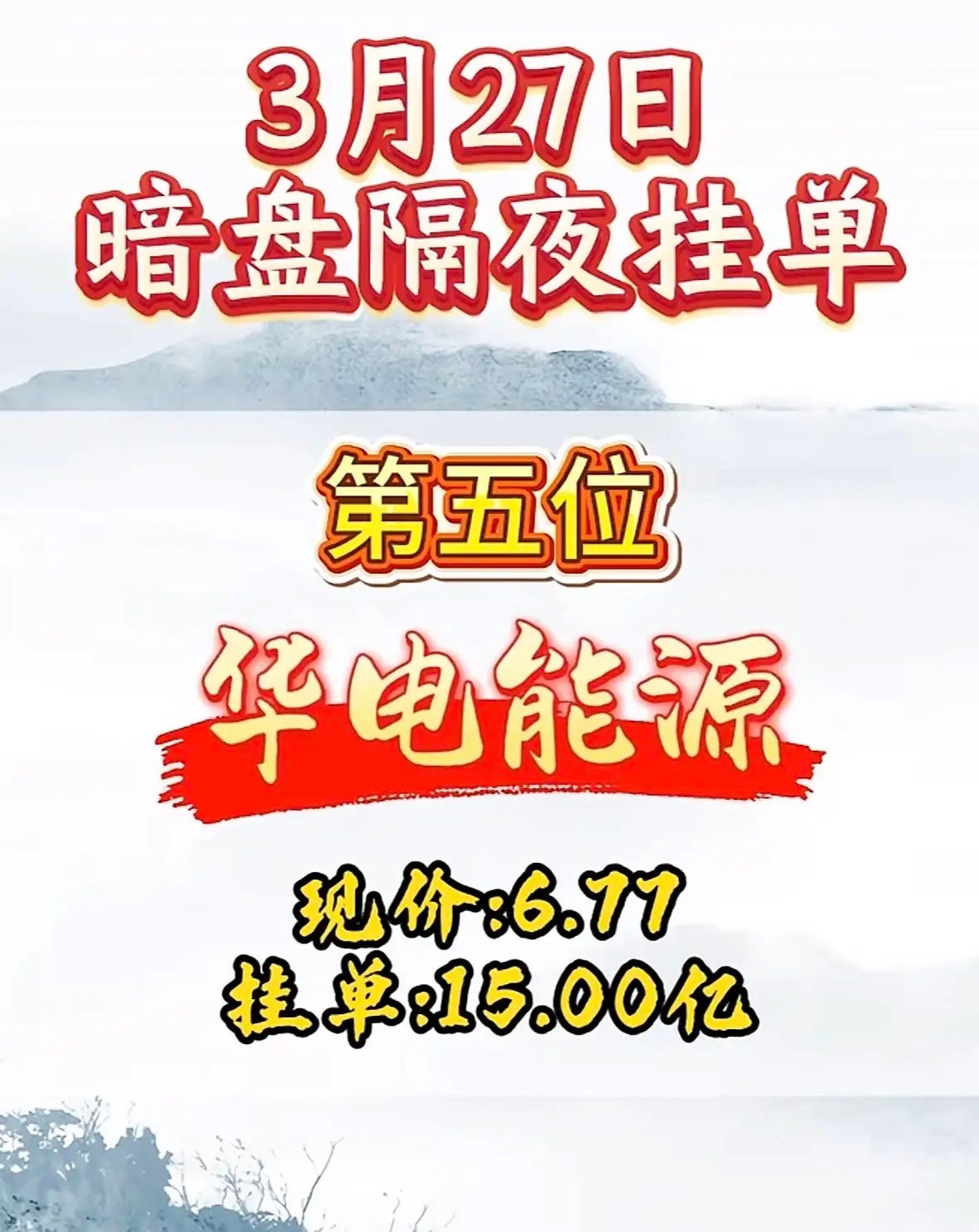 3月27日周五暗盘隔夜挂单排行榜揭晓