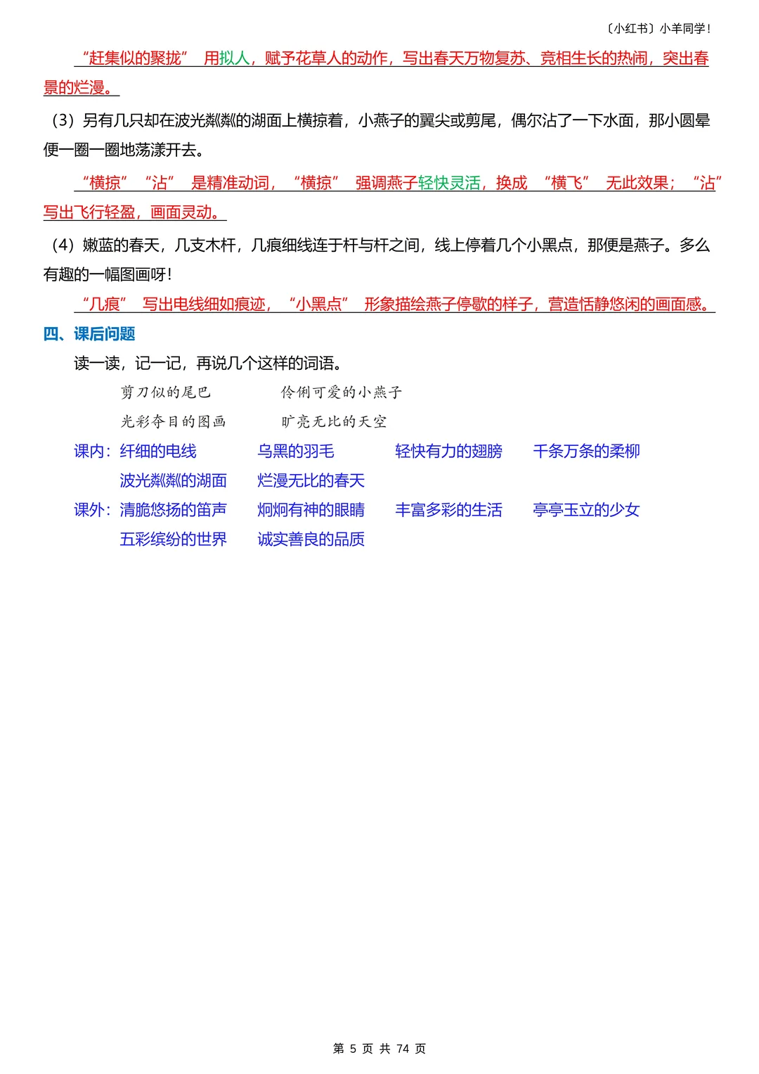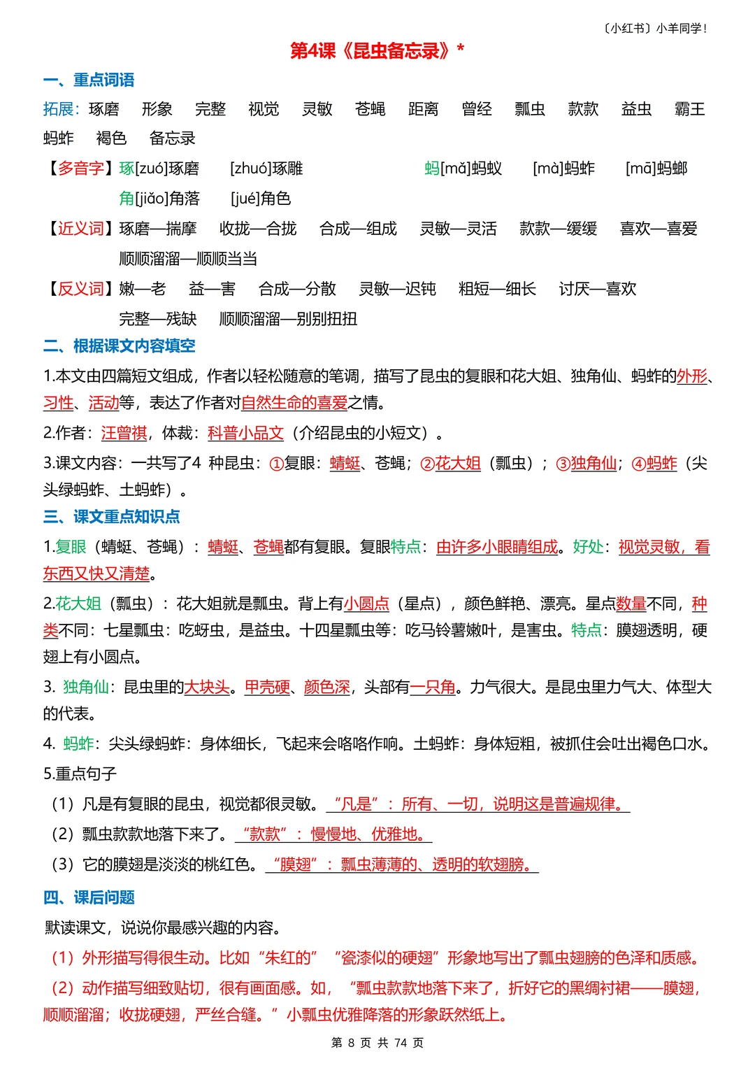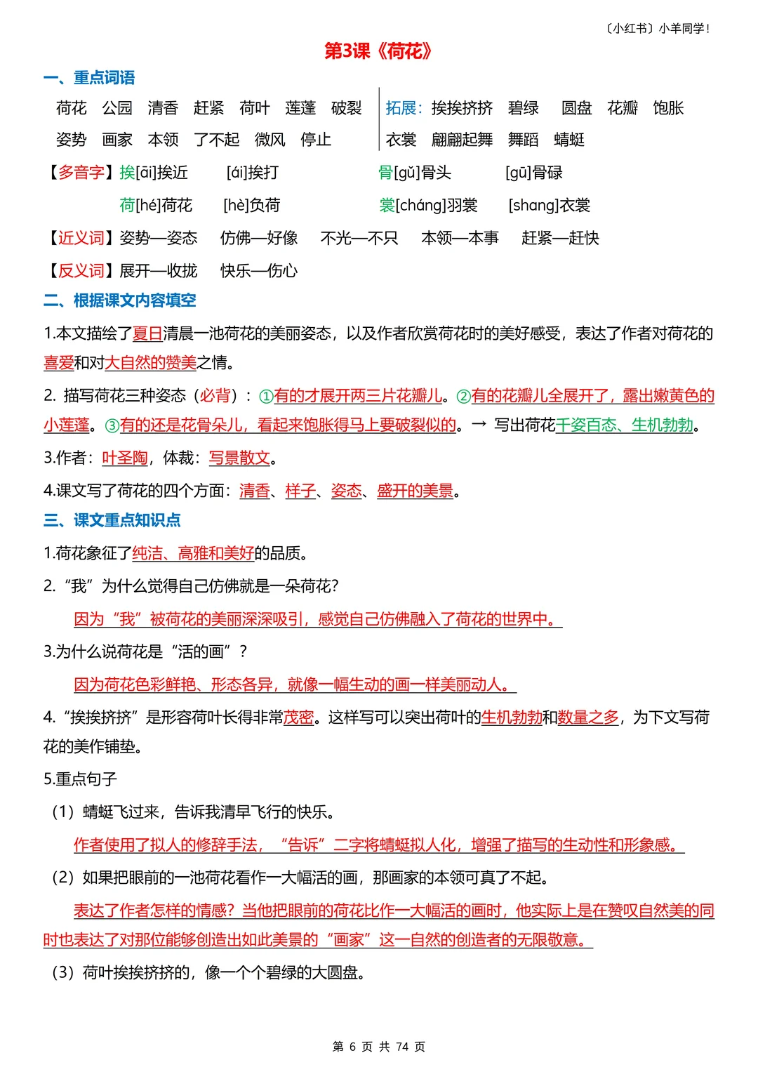 是改版后的新课标!!! 每天读10分钟,考点重点全吃透!!? 家有三年级娃的宝妈!孩子语文总记不住考点?这份每课重点+语文园地归纳,让娃每天读 10分钟,轻松抓分!​ 一共74页,而且是新课改! ----- 🔍 4 大模块,每天读一点​ 1️⃣重点词语 2️⃣根据课文内容填空 3️⃣课文重点知识点 4️⃣课后题​ 语文园地包含口语交际、梳理与交流、识字加油站、词句段运用、日积月累等。 ----- ✨ 为什么适合每天读?​ ✅内容精简:每课重点浓缩成,10 分钟就能读完。 ✅考点明确:只留要考的,不浪费时间在无关内容上​ ✅持续提分:每天积累一点,期末语文稳提升​ ----- 🎁 领取方式​ 完整电子版,直接点评论区店铺获取!​ 三年级语文打基础的关键时期!让娃每天读 10 分钟,比盲目刷题更有效~💪 收藏起来,陪娃坚持! -----