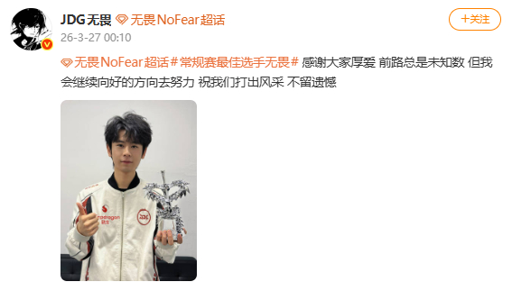 无畏回应常规赛最佳选手无畏晒常规赛最佳选手奖杯 :感谢大家厚爱 前路总是未知数 但我会继续向好的方向去努力 祝我们打出风采 不留遗憾