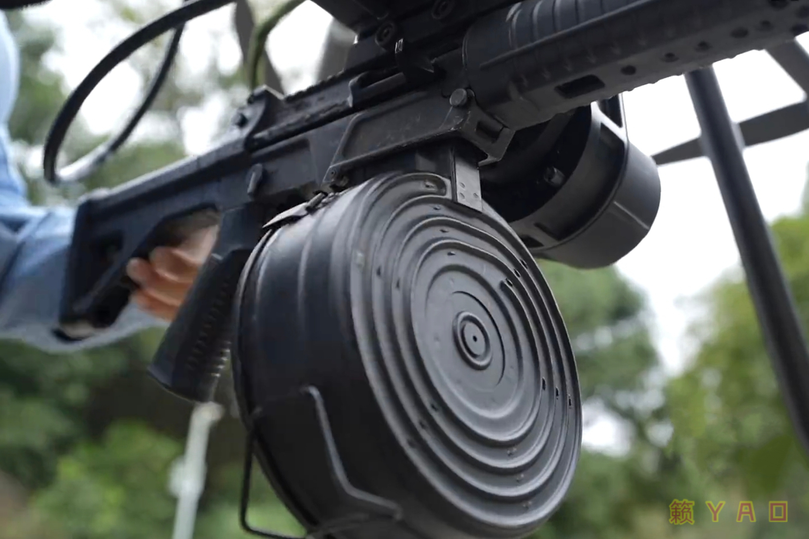 296给无人装备整得新玩具,一款带电继动器的9mm冲锋枪,还配了大容量弹鼓。