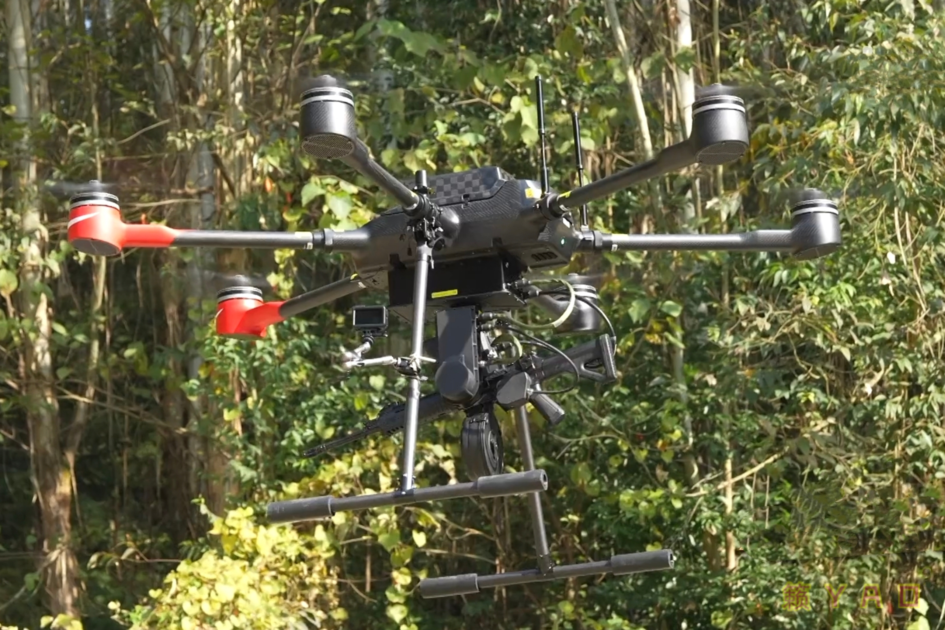 一体式无人飞枪简单说就是把枪塞进无人机肚子里了合二为一上到221自动喷下到171