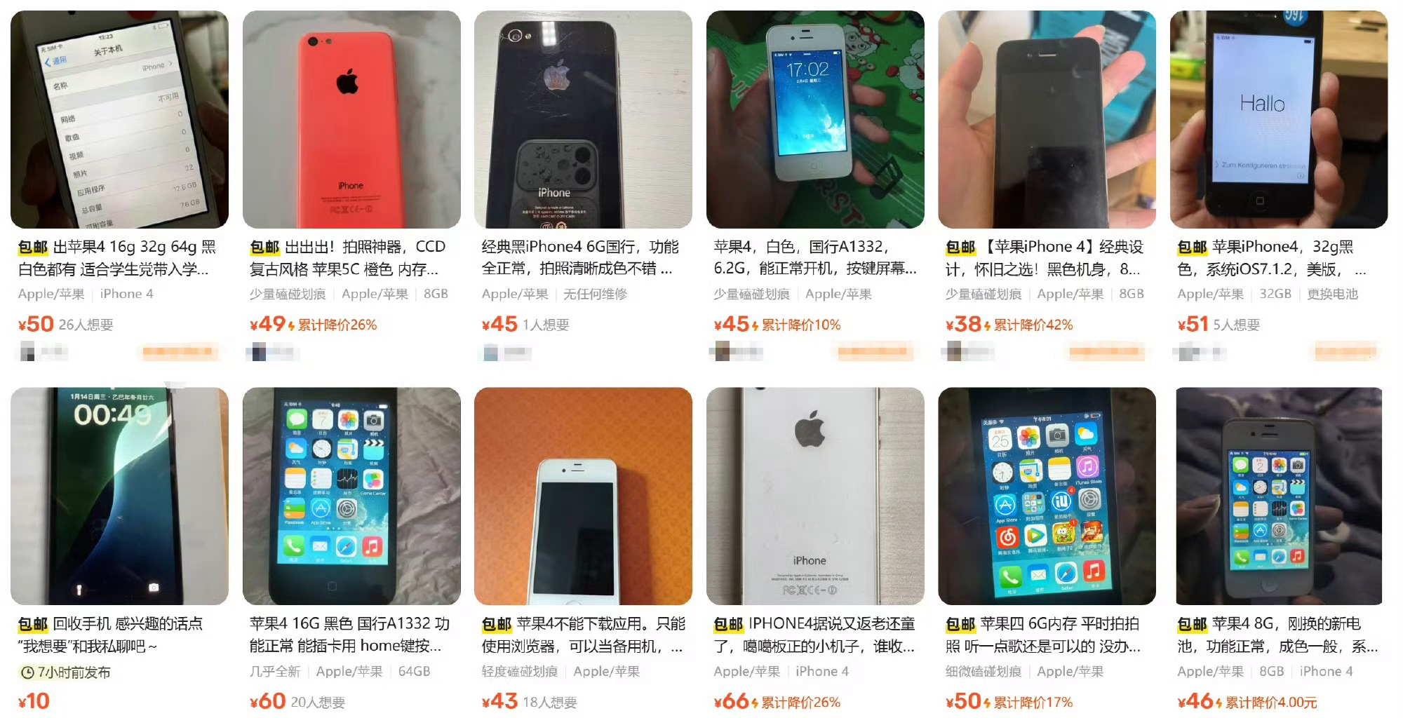 iPhone4回收价暴涨80倍净瞎炒作?谁要?咸鱼一抓一大把!都是几十块钱!
