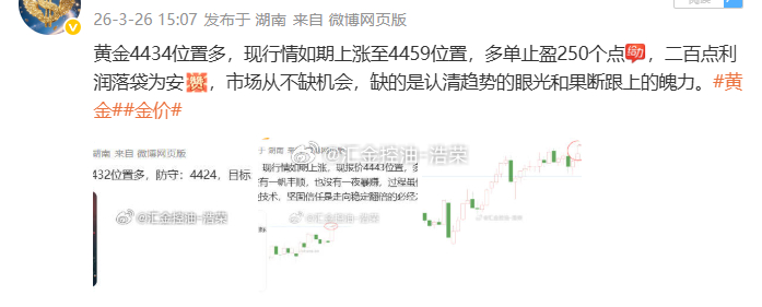 2026.3.26日操作4单,全胜!共收割910点利润。让不甘平凡的心休息一下,夜晚是积赞能量最佳时刻,今日到此收工,晚安。黄金 金价 晚安