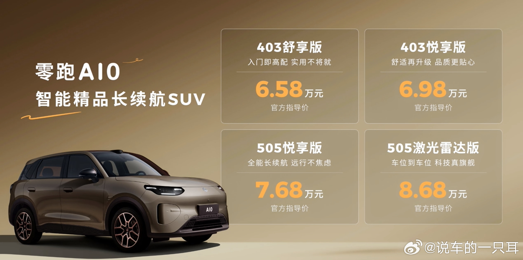 零跑A10开启激光雷达8万时代 零跑A10,我想给它个专属名词——《智能普惠》。它是你能买到带激光雷达,并且支持城区辅助驾驶的第一车。而价格,9万以下。这是零跑汽车坚持全域自研的优势。能力上,零跑A10的辅助驾驶可以做到车位到车位,既城市NAP、高快领航、自动泊车。辅助驾驶时,加速、刹车判断果决,超车并线也不在话下,特别是在面临绕行时,处理也到位。说实话,10万级的车,10万级的辅助驾驶,普遍上限明显,但是零跑A10不仅在功能上,能力上也是越级的存在,而且只要零跑汽车A10 6.58万起售!!其实在内饰上,零跑A10会给人一种错觉——它是更高价位的车。即便是十万级,甚至是十万以下级,它也尽可能消除大面积的塑料材质,做工用料都考究扎实。门板的软质条纹、可拆卸的香氛,还有着一种情趣感。同时车内座椅的布置也很聪明,副驾座椅可以翻折、后排坐垫可以掀起等等,相信这个下沉式的隐藏空间,大家一定会喜欢的,可以说零跑动了超越10万级的心思,空间利用率很高。除此之外,零跑A10在底盘方面的处理也很用心,就说一个点:在这个价位下,它可以做到路面反馈声音时“不闷耳”,这一点看似都快是部分纯电车,甚至是更贵纯电车的“老大难”问题了。这台X万级的零跑却解决的很好。零跑A10在十万级,甚至是十万以下级给到了我们他们最大的诚意。我们在去看车时不仅要看到它可爱外观的“嘻嘻哈哈”,也一定要去试驾,你甚至可以也试试其他的零跑车型,你会感觉到:更低的价格只是因为车型更小,而不是因为品质的下降。陈都灵聊宠物出行太共情了
