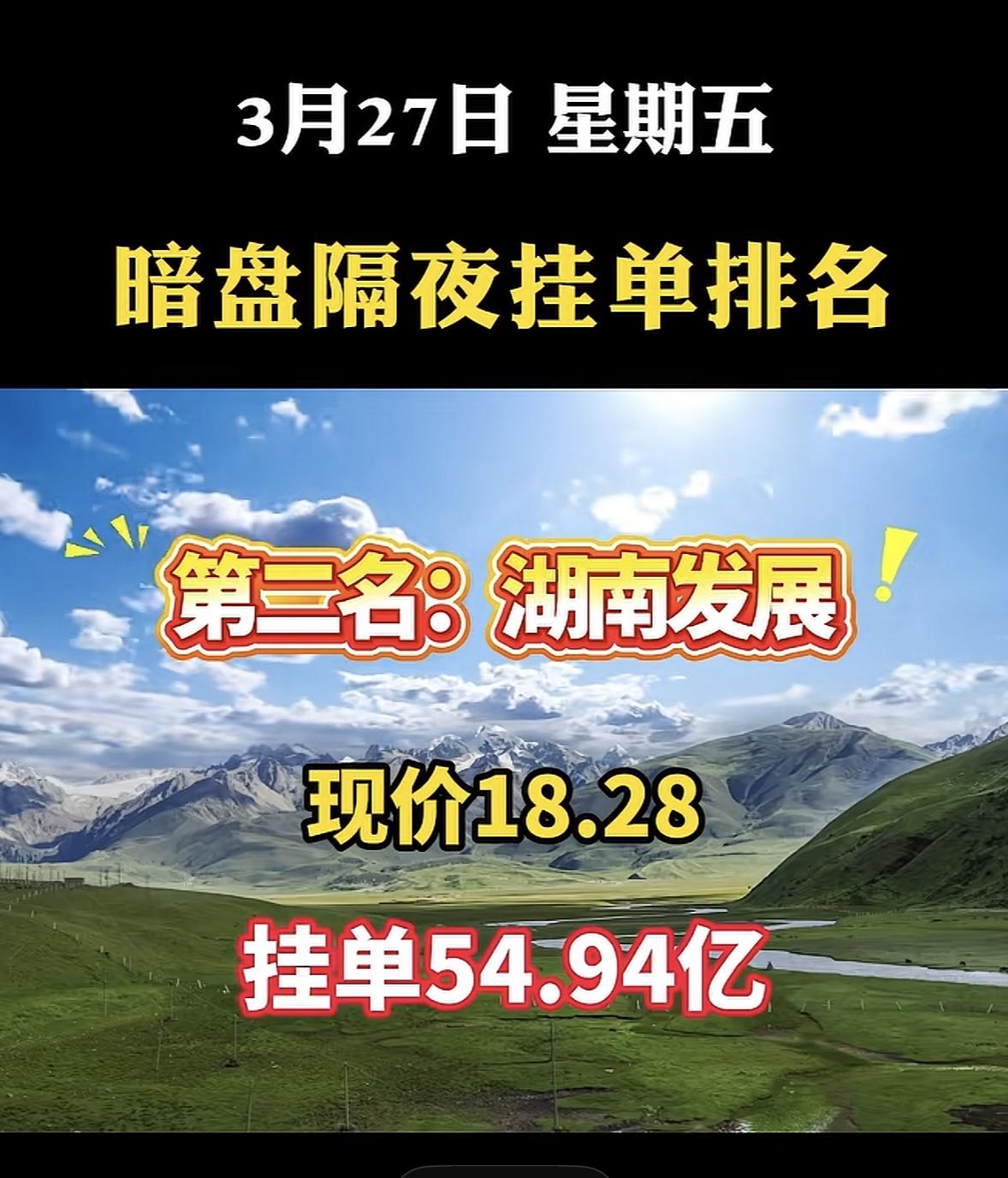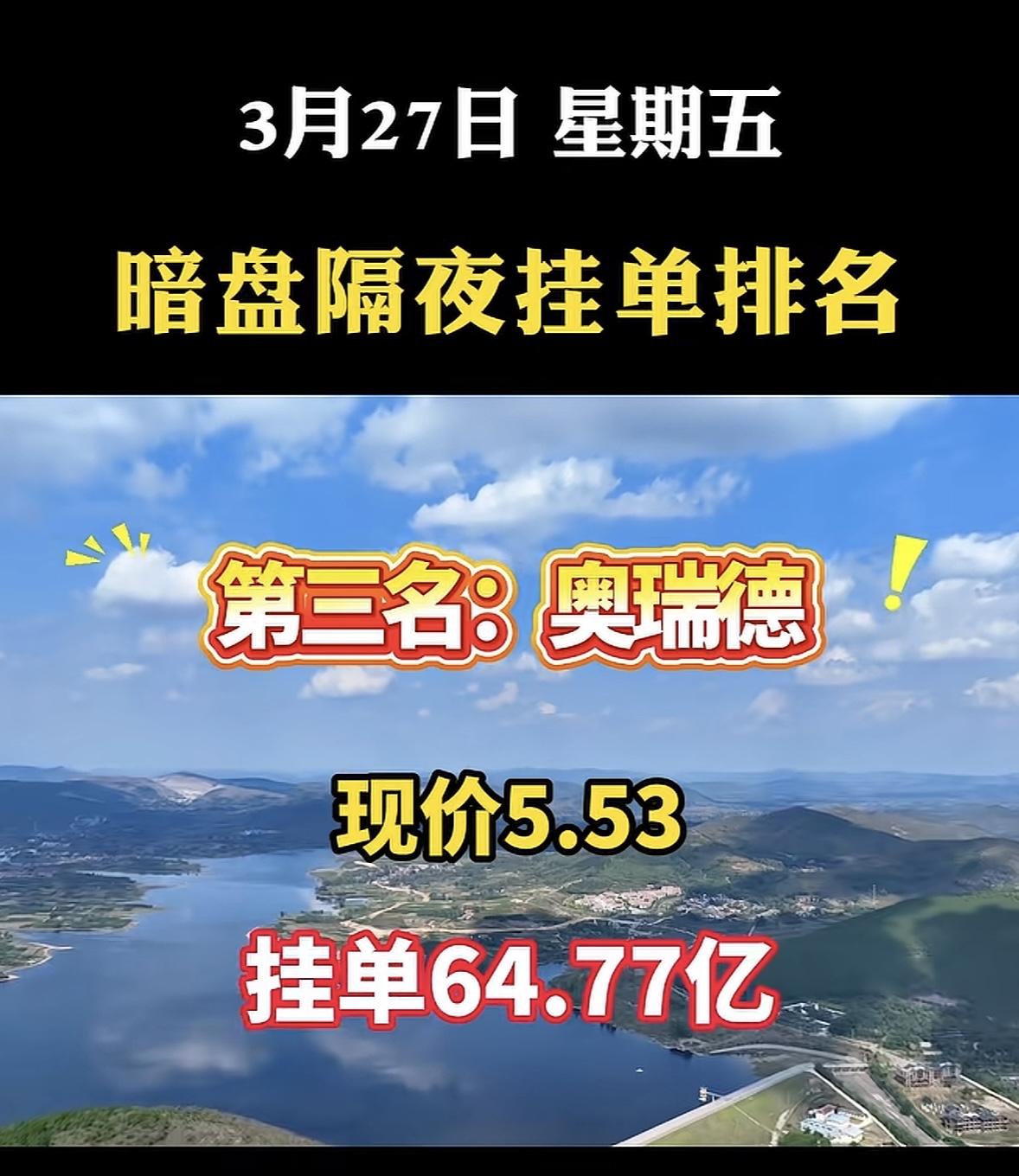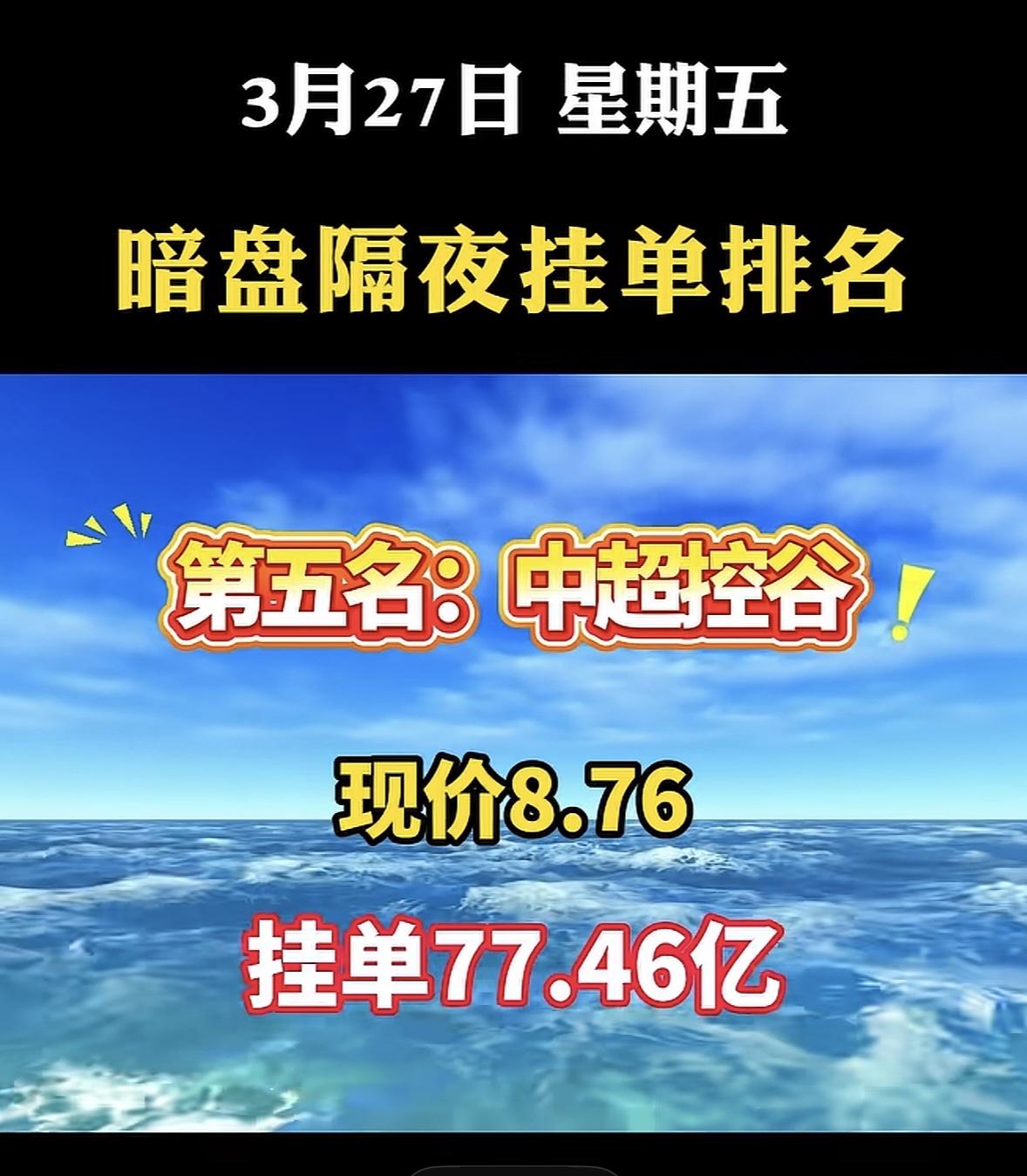 3月27日周五暗盘隔夜挂单排行榜出炉 华电能源这情况有点意思啊!现价6.77,挂单居然高达82.23亿,这数字看着就很震撼。暗盘隔夜挂单还排到了第七,这说明有不少人在关注它。 这么大的挂单量,说不定背后有大资金在布局。也许是看好华电能源未来的发展,可能是觉得它在能源领域有潜力。不过,股市这东西谁也说不准,这么高的挂单也可能带来一些不确定性。要是后续有资金持续跟进,股价说不定能往上冲一冲;但要是资金突然撤了,那也可能会有波动。总之,华电能源这波操作值得持续关注。