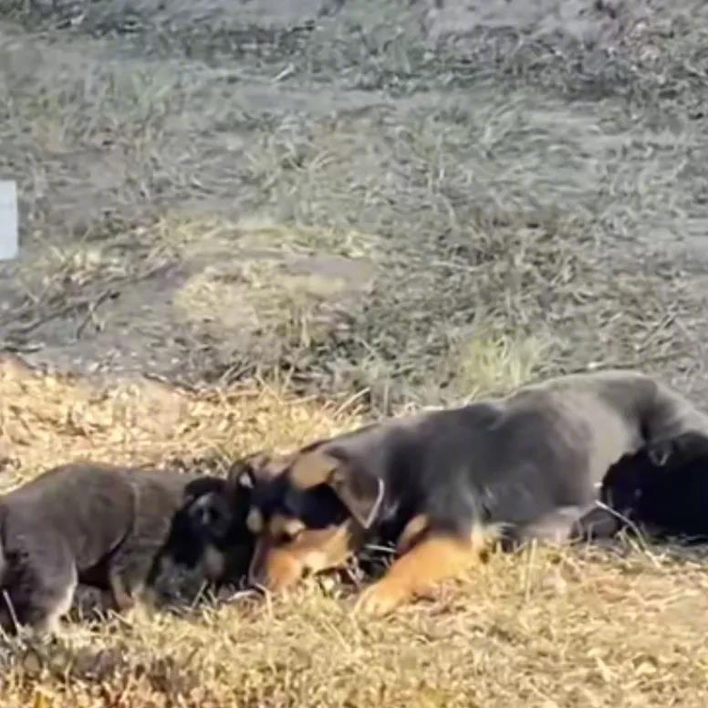 因为被打怕了,所以狗妈妈离得人很远,无奈用了点麻醉。当她快要支持不住的时候,还是顽强的守在自己孩子身边,孩子们也紧紧的靠着自己的妈妈。