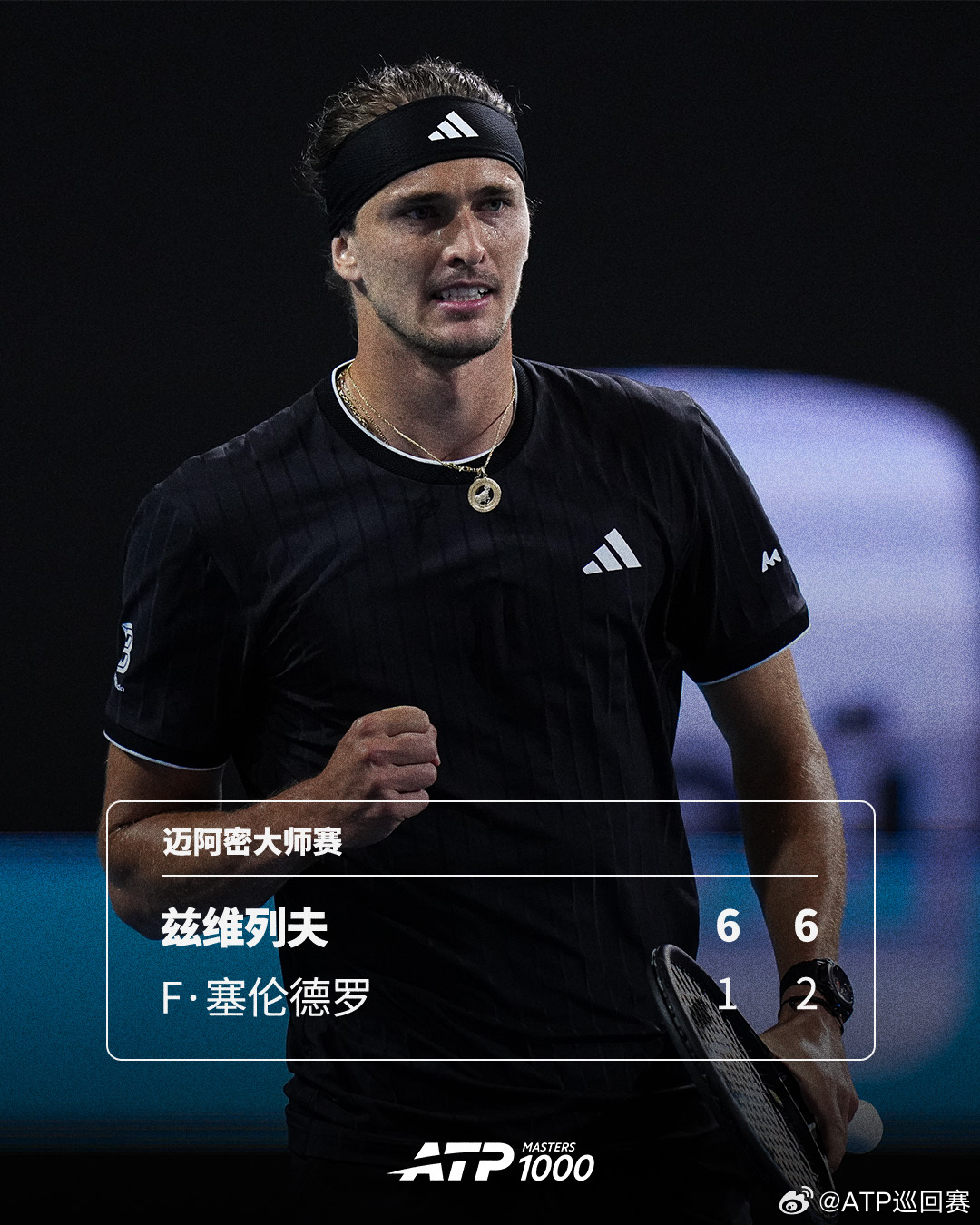 ATP1000 迈阿密大师赛1/4决赛,3号种子兹维列夫以6-1 6-2横扫18号种子F·塞伦德罗,四连胜对手同时将双方的交手记录反超为4-3。这是德国名将第3次跻身赛会四强、第25次闯进大师赛四强,半决赛他将对阵辛纳。