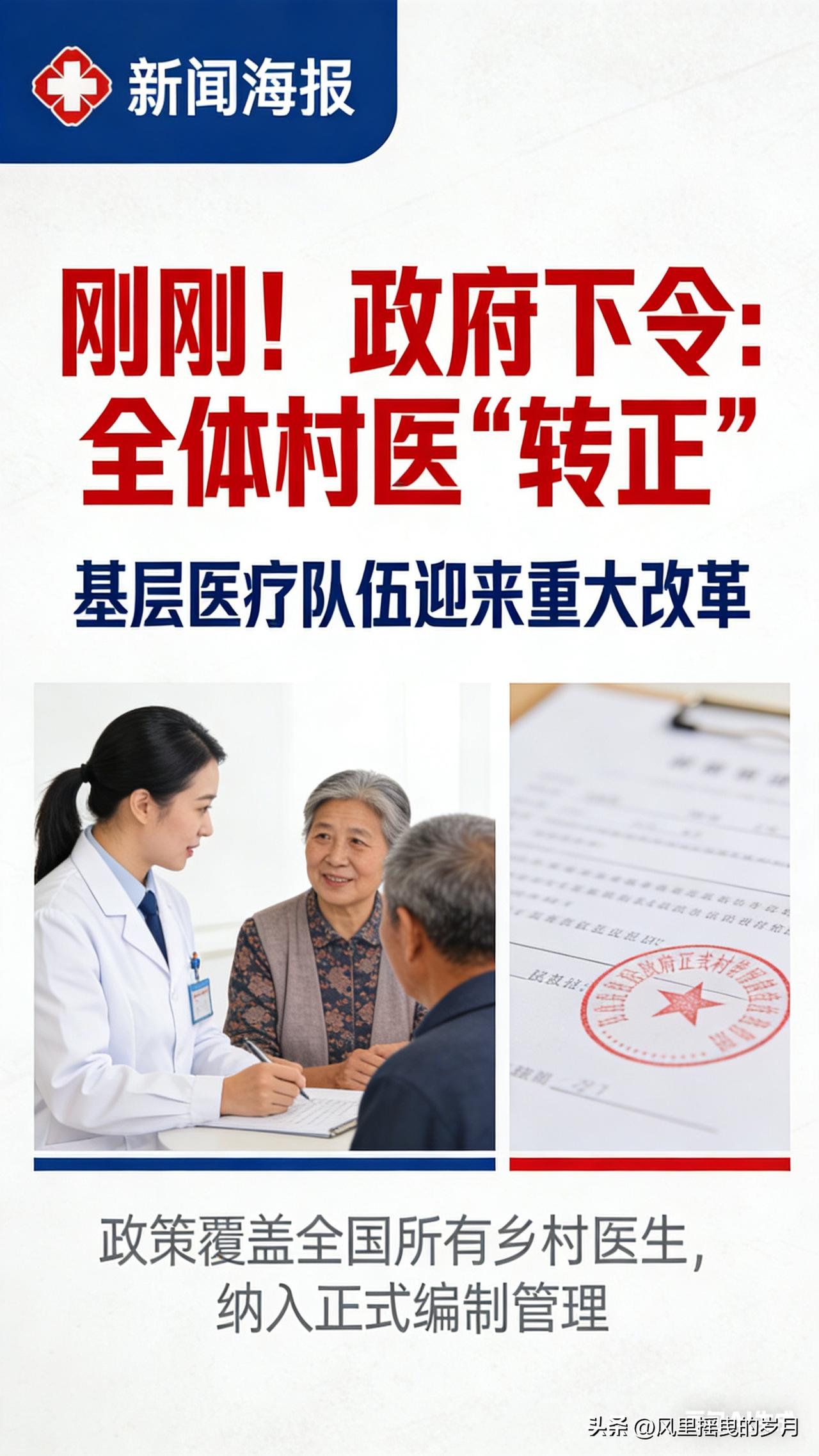 刚刚!政府下令:全体村医“转正”,身份、待遇、养老全解决! 千呼万唤始出来!事关全国百万村医的核心诉求终于迎来重磅落地——国家层面明确推进村医“转正”改革,打破“半农半医”的身份困境,从编制、薪酬、养老到职业发展,全方位为村医筑牢保障,基层医疗“守门人”终于迎来属于自己的“定心丸”! 一、重磅官宣:村医“转正”全面铺开,告别临时工身份 长期以来,村医作为农村医疗卫生的“最后一公里”守护者,却长期面临身份模糊、待遇偏低、养老无保障的尴尬处境。如今,这一局面彻底扭转! 根据中央及地方最新政策部署,“乡聘村用、县管乡用”成为村医转正的核心路径,多地已实现村医全员纳入乡镇卫生院统一管理,直接转为卫生院正式员工。无论是在岗多年的老村医,还是新入职的大学生村医,只要符合条件,均可通过考核纳入事业编制或签订正式劳动合同,彻底告别“临时工”标签,拥有稳定的公职身份。 目前,上海、浙江、天津、河南、甘肃等多地已率先落地:浙江余姚实现村医全额正式编全覆盖,天津武清区将村医纳入乡镇卫生院编制管理,享受事业单位同等社保待遇;甘肃明确连续执业10年且取得执业医师资格的村医,可通过事业单位招录直接入编。国家卫健委更是明确表态,将推动大学生乡村医生纳入乡镇卫生院编制,已落实超1万名,标志着村医转正从局部试点走向全国性制度改革 。 二、三大核心红利落地,村医待遇全面升级 1. 编制兜底:事业编+稳定薪酬,告别收入波动 转正后的村医,直接纳入乡镇卫生院编制体系,薪酬待遇按在编人员标准落实,由财政统一保障。不再依赖药品加成、诊疗费等不稳定收入,基本工资、绩效工资、岗位津贴一应俱全,多劳多得、优绩优酬,收入水平大幅提升 。同时,乡镇卫生院专业技术岗不低于90%,优先用于村医入编,多地还设立专项周转编制池,不占常规名额,让村医入编更顺畅。 2. 社保全覆盖:养老、医疗无后顾之忧 养老问题曾是村医最大的痛点,如今彻底解决!纳入编制的村医,直接参加机关事业单位养老保险;未入编但签订正式合同的村医,统一缴纳企业职工基本养老保险,告别城乡居民养老保险的低保障困境 。此外,医保、工伤、失业、生育等“五险”全面覆盖,老村医的养老待遇、在职村医的医疗保障全部兜底,真正实现“老有所养、病有所医”。 3. 职业晋升:职称、培训双向赋能 转正后的村医,与乡镇卫生院职工享有平等的职称评聘、晋升通道。国家大力推动村医向执业(助理)医师转化,通过全科医生转岗培训、定向培养等方式,提升村医专业能力;同时,同等条件下乡镇卫生院优先聘用取得执业(助理)医师资格的村医,为村医职业发展打通上升渠道,让村医从“赤脚医生”向专业化、规范化医师转型 。 三、三类村医优先受益,覆盖老中青全群体 此次转正政策并非“一刀切”,而是兼顾不同群体需求,让每一位坚守基层的村医都能享受到政策红利: 1. 优秀在岗老村医:连续执业满一定年限(如甘肃10年)、群众认可度高、无不良执业记录的老村医,可通过考核直接纳入编制或签订长期合同,解决养老后顾之忧; 2. 持证专业村医:取得执业医师、执业助理医师资格的村医,成为入编优先对象,多地明确这类村医可通过定向招聘直接入编 ; 3. 大学生村医:通过“大学生乡村医生专项计划”招录的高校毕业生,免试注册后限期考取执业资格,考核合格直接纳入乡镇卫生院编制,享受学费补偿、贷款代偿等优惠政策 。 四、基层医疗迎来新变局,村民看病更有保障 村医转正,不仅是村医群体的福音,更直接惠及亿万农村居民。随着村医身份稳定、待遇提升、能力增强,农村卫生室的服务水平将大幅升级:常见病、多发病在家门口就能得到专业诊疗,慢性病管理、公共卫生服务更规范,村民不用再“小病跑乡镇、大病跑县城”,基层医疗“网底”越筑越牢。 同时,稳定的待遇和发展空间,将吸引更多年轻人投身乡村医疗事业,破解村医队伍老化、后继无人的难题,让基层医疗始终充满活力。 从“赤脚行医”到“正式在编”,从“收入无保障”到“待遇全兜底”,村医转正政策的全面落地,是对百万基层医疗工作者的致敬与保障,更是乡村医疗卫生体系改革的关键一步。未来,随着政策的持续推进,村医将真正成为有尊严、有保障、有奔头的职业,守护好亿万农民的健康防线!