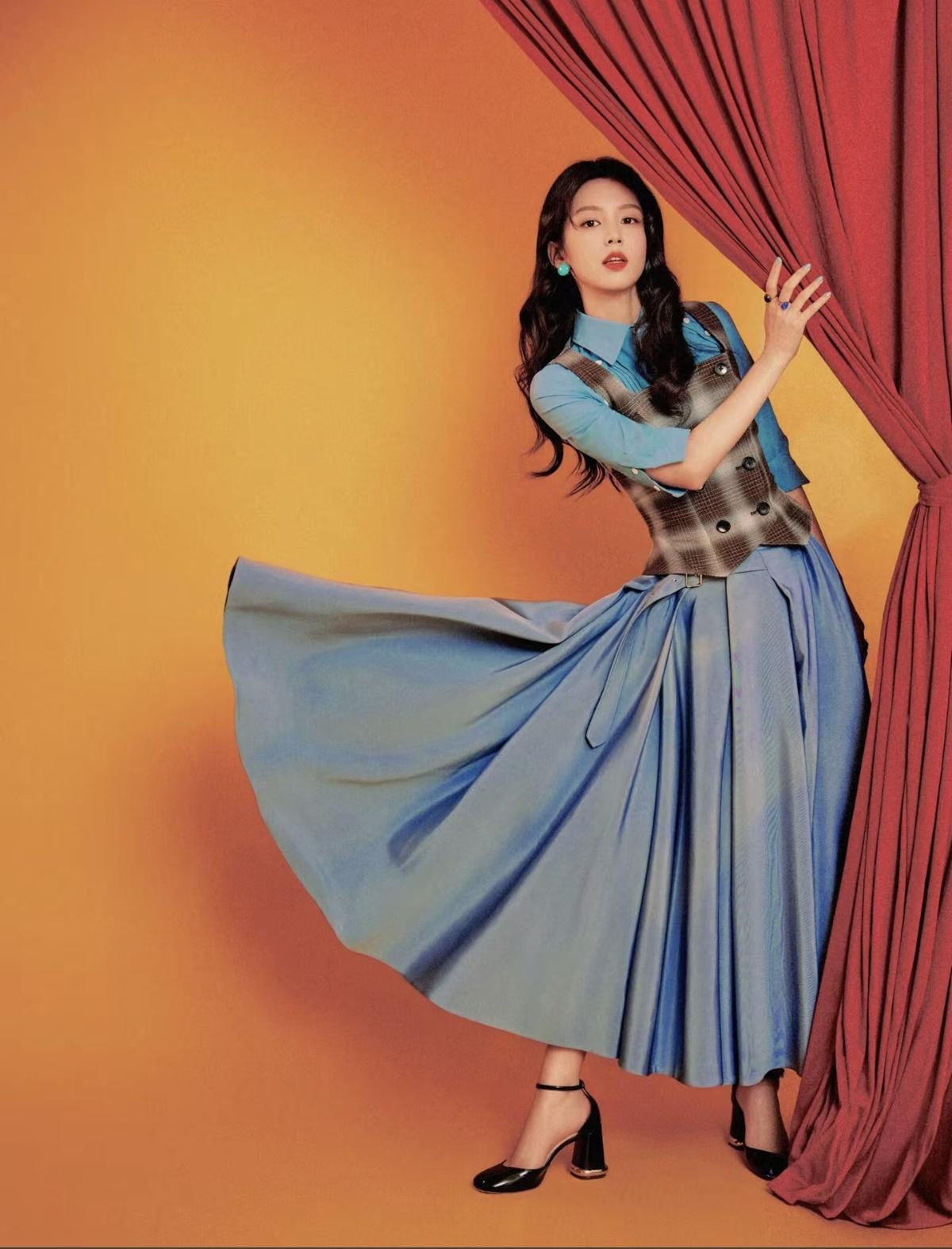 藏在蓝调里的温柔,是周也的专属氛围感[比心]格纹与裙摆的碰撞,像从旧时光里走出来的夏晓兰,温柔又坚韧[赞]娱乐明星