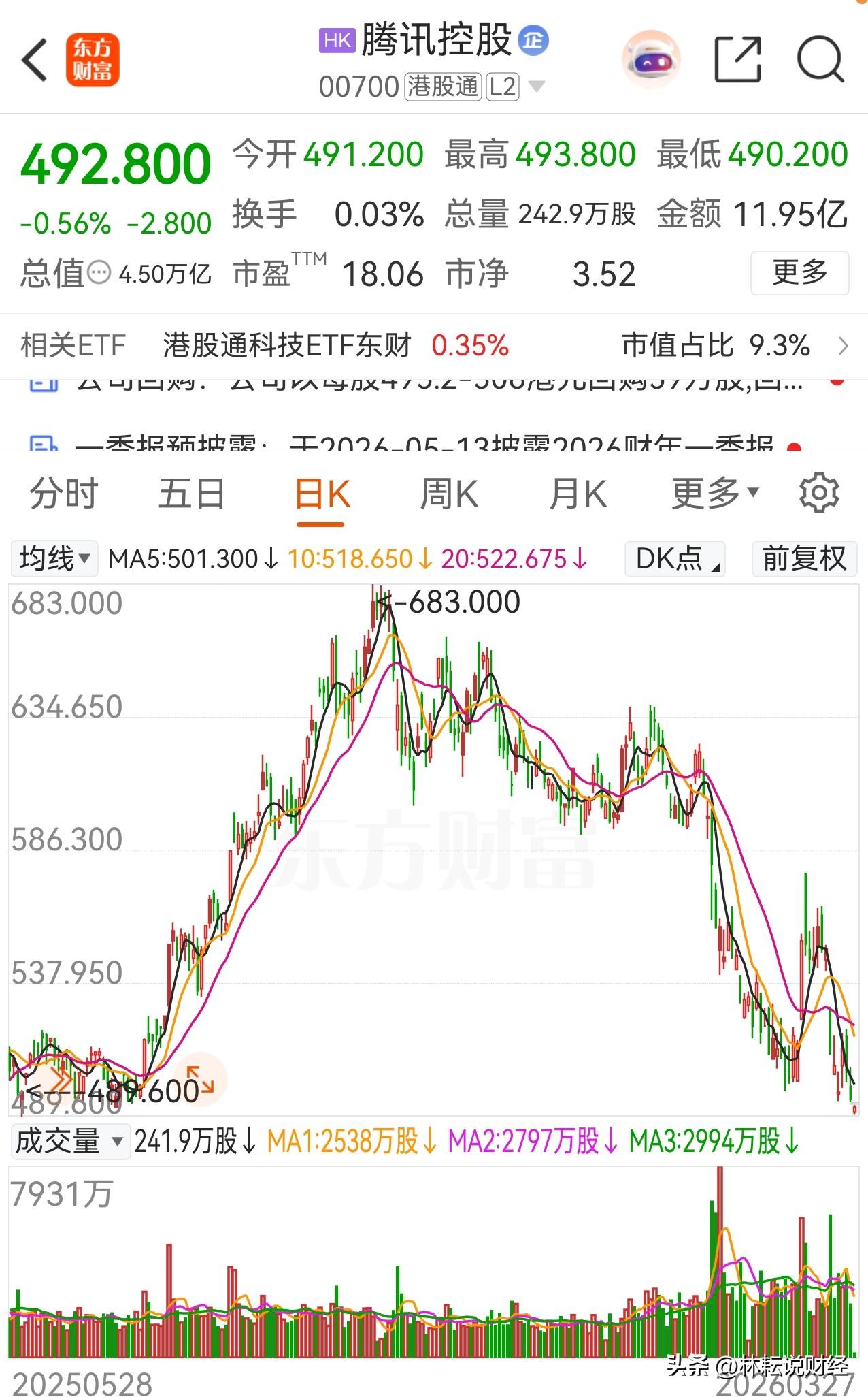 腾讯失守500关口创下阶段新低,即使重启回购也未见企稳。说重点,投资逻辑面临大考。
