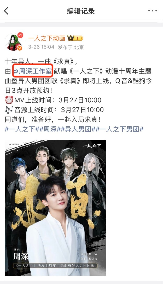 0人看到编辑记录能不笑压力给到周深工作室周深工作室:如果全世界都指责我,那我就安利周深新歌《求真》。周深粉丝:传下去,周深工作室背着周深搞副业了,要和周深抢工作了!快让工作室小伙伴一起大合唱!
