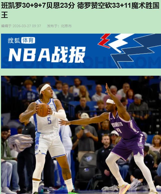 您猜怎么着?德罗赞拼了老命轰下33分11助攻,第二节单节17分像个战神,结果国王愣是输给了六连败的魔术。这叫什么事儿啊?您没看错,这就是 yesterday 的NBA——一个36岁老汉扛着炸药包冲锋,回头一看,队友手里的枪全变成了呲水枪。说好听点叫空砍,说白了就是白忙活。 咱先说说这魔术。终结六连败,重返东部第八,听着像上岸了是吧?细瞅瞅比赛过程,领先12分能被追平,末节剩五分钟还领先10分呢,愣是让国王一个连名字都念不顺的普洛登,哐哐哐连着三个三分干到只差1分。好家伙,这防守跟纸糊的有什么区别?最后靠萨格斯那记弧顶三分续命,贝恩两罚全中才没翻车。班凯罗30+9+7数据挺美,可您看比赛就知道,进攻打得那叫一个便秘,全靠个人能力强拆。小瓦格纳和艾萨克还躺在伤病席呢,赢个西部倒数第一的残阵国王,也就是饿极了捡个冷馒头,止饿不顶饱。 再看国王,我是真服了。稳居西部副班长,这宝座坐得稳稳当当。德罗赞在芝加哥是中投之王,到萨克拉门托快成空砍群主了。第二节他一个人扛着球队跑,队友呢?除了普洛登末节那三个神仙三分,还有谁能站出来?阿丘瓦14+9看着凑合,可护框呢?篮板保护呢?魔术那帮人在内线二次进攻打得跟训练赛似的。您说缺兵少将?小萨、拉文、穆雷、威少都不打,这是事实。可场上那股子气儿呢?散漫得隔着屏幕都能闻着味儿。这就不是阵容问题,是骨子里散了架。 更逗的是关键时刻。魔术那边萨格斯全场就8分,但人家就敢在弧顶扔那颗要命的三不沾...哦不,三分。国王这边德罗赞整场手感滚烫,决胜时刻球都摸不到几回,只能看着普洛登扔。这对比,扎心不? 说白了,这场121-117就是面照妖镜。魔术照出了自己附加赛门槛上摇摇欲坠的窘迫,国王照出了重建彻底失败的迷茫。若您换个角度想,德罗赞36岁了还这么拼,这股子职业劲儿不治愈吗?普洛登一个边缘球员末节连中三元,这不比剧本燃?魔术好歹止住了血,国王的年轻人也真刀真枪练了级。烂队互啄?也是早八人的救赎。赛季还长,谁能上岸,还真说不定呢。班凯罗贝恩德罗赞魔术胜国王